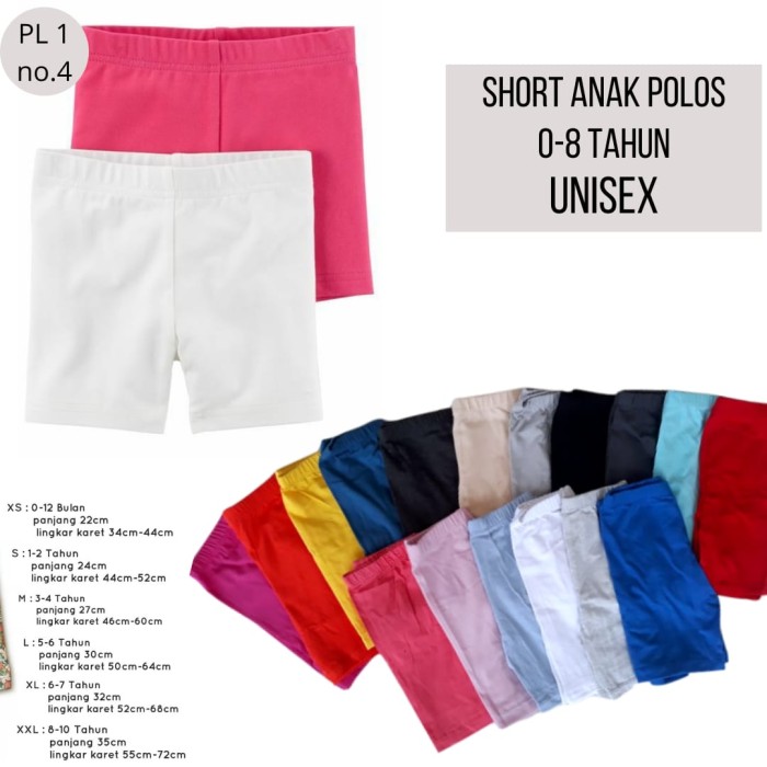 0-8 THN - CELANA PENDEK ANAK PEREMPUAN KAOS KATUN - SHORT POLOS STREET - XS (0-12 BLN), POLOS GELAP