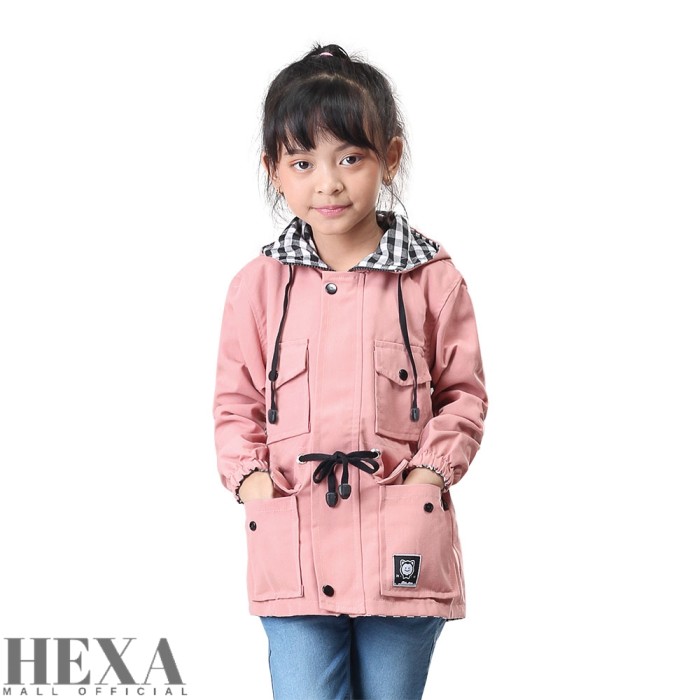 JAKET PARKA CANVAS ANAK PEREMPUAN UMUR 5 6 7 8 9 10 11 12 TAHUN - PINK - 11-12 TAHUN