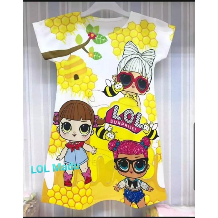 DRESS ANAK PEREMPUAN / BAJU ANAK BAHAN SCUBA / DASTER ANAK /BAJU TIDUR - 4-5 TAHUN, LOL MADU