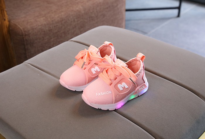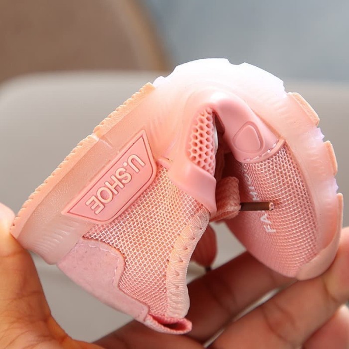 LKM040 LITTLE KUMA SEPATU SPORT ANAK LAKI-LAKI CASUAL BAYI LAMPU LED - 29, MERAH MUDA