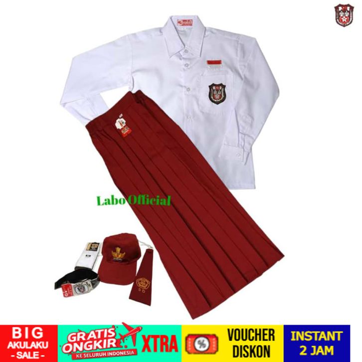 Seragam Sekolah SD Merah Putih Perempuan Lengan Panjang Rok Merah/Setelan Sekolah SD Merah Putih Perempuan