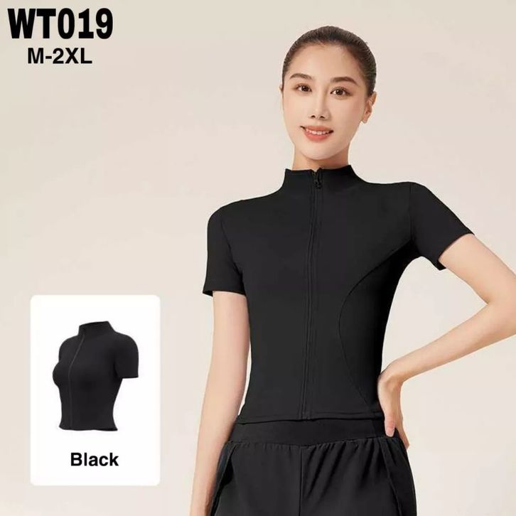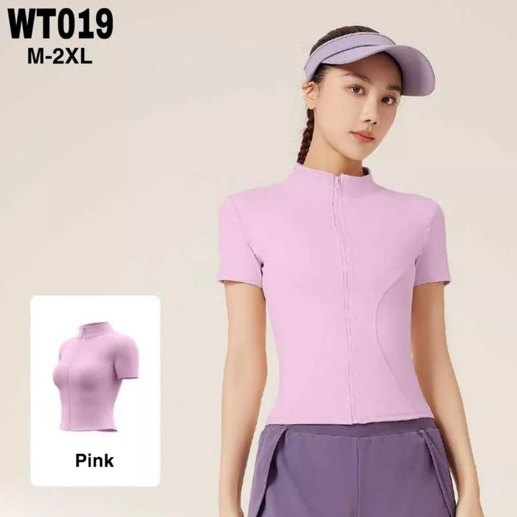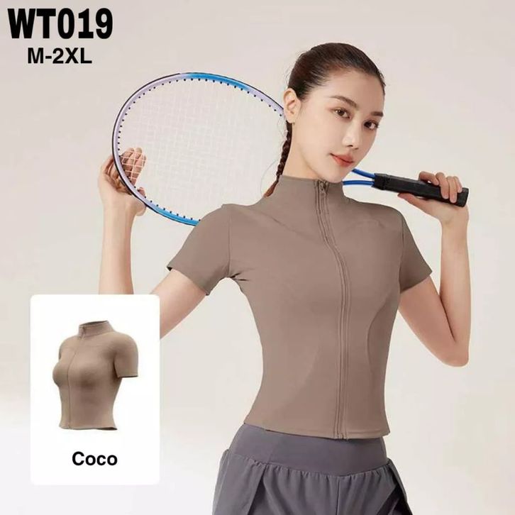Baju Olahraga Wanita Zipper Lengan Pendek Baju Lari Padel Tenis Golf Gym Fitnes Senam Badminton Nilon Dryfit