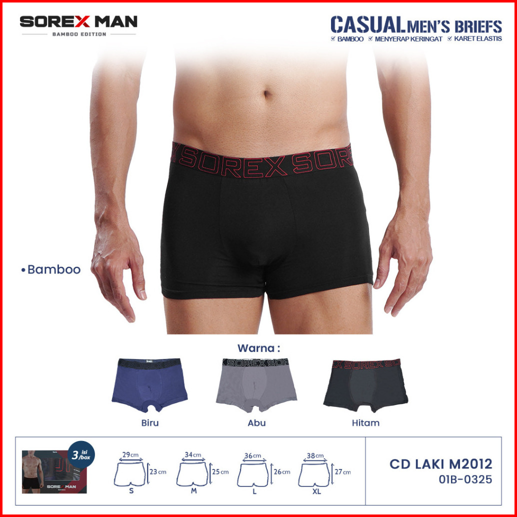 1 Kotak Isi 3 Pcs Sorex Cd Casual Men Boxer Cotton Bamboo Fiber Cd Lk M 2012