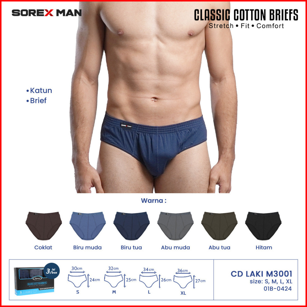 Isi 3 Pcs - Sorex Man Celana Dalam Lk 3001 100 Cotton