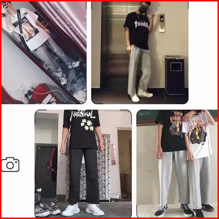Loose Pants Celana Panjang Pria Fashion Korea Celana Kasual Pria Celana Hitam Sweatpants Pria Straight Pants Pinggang El