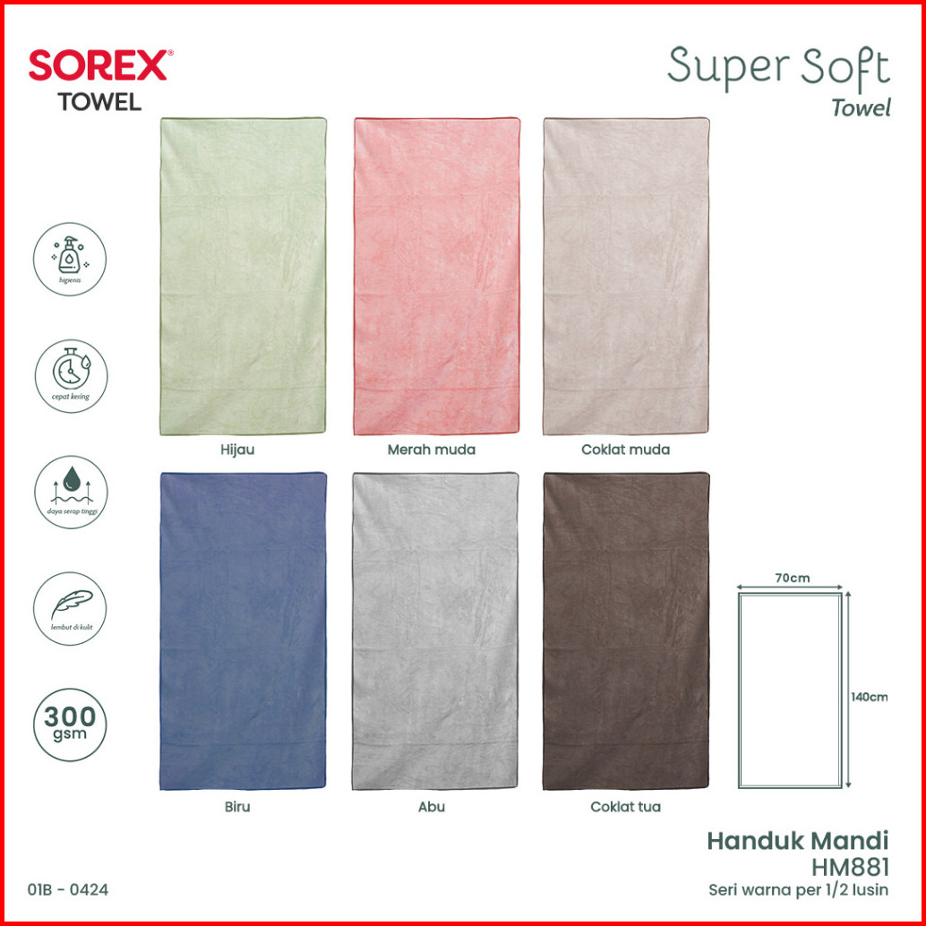 Sorex Handuk Mandi Dewasa Microfiber Towel Soft Lembut Daya Serap Tinggi Hm 881