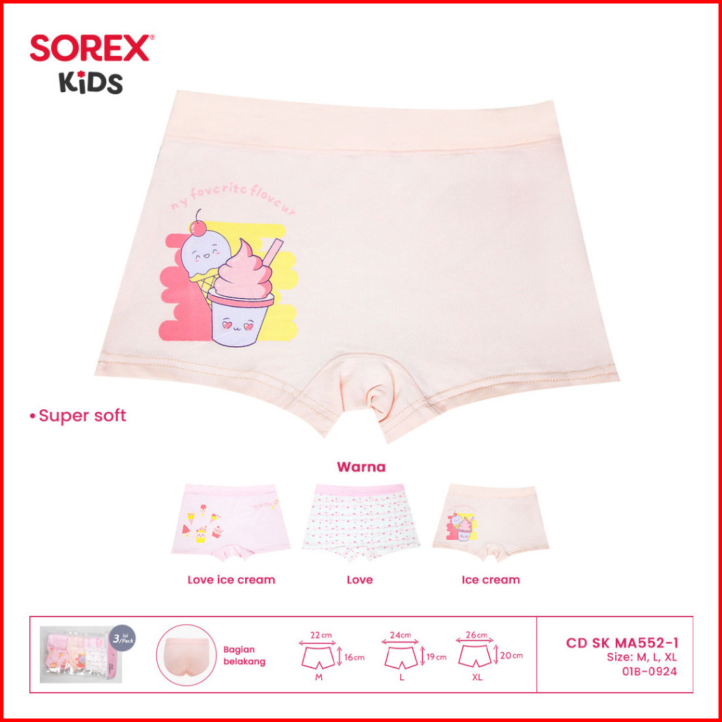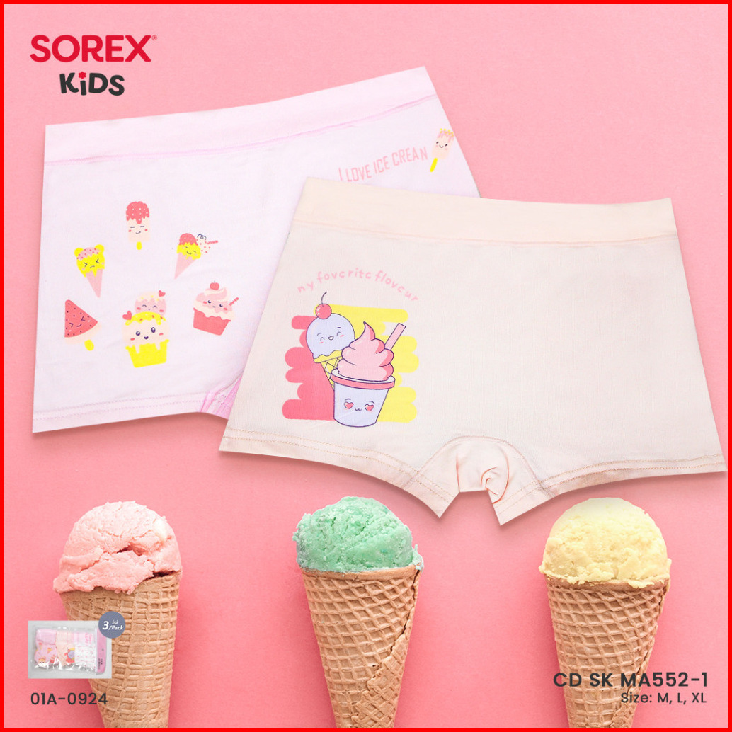 3 Pcs Sorex Kids Cd Boxer Anak Perempuan Super Soft Cd Sk Ma 552