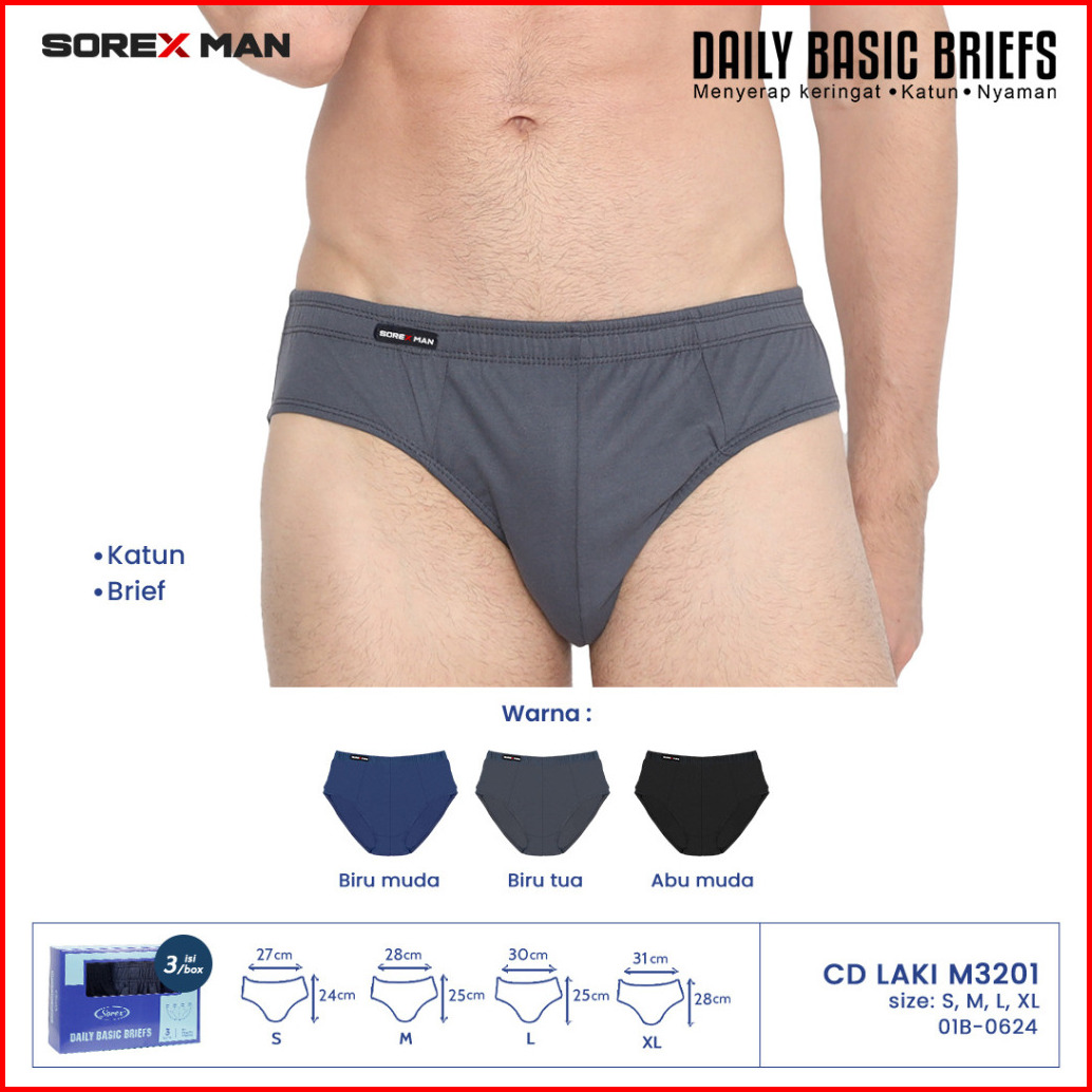 Isi 3 Pcs Sorex Man Cd Men Daily Basic Briefs Cd Lk M 3201