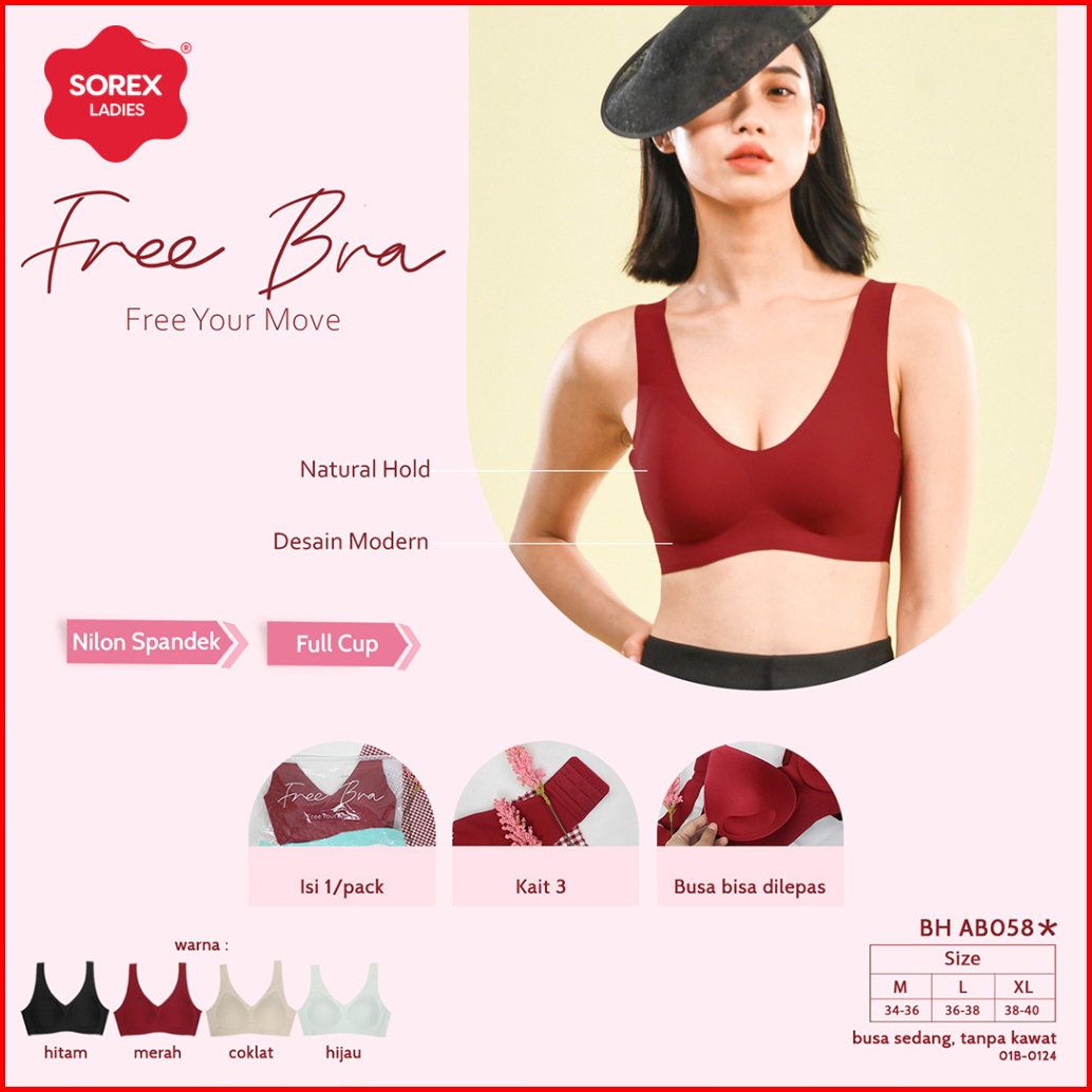 Sorex Free Bra Busa Sedang Tanpa Kawat Kait 3 Setara Cup B Seamless Dengan Packaging Exclusive Bh Ab 058