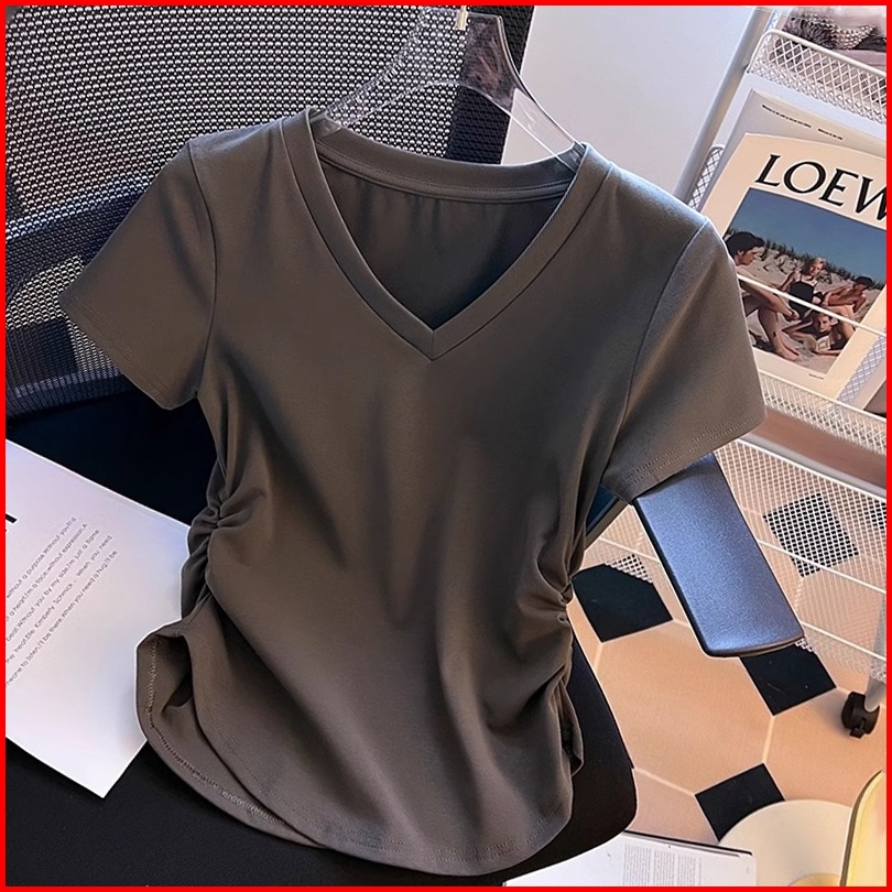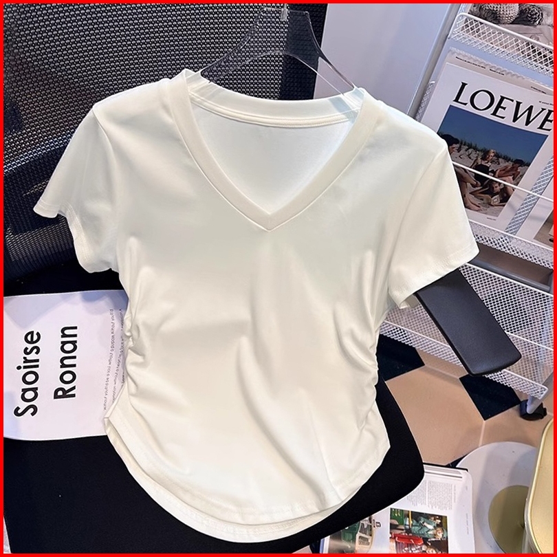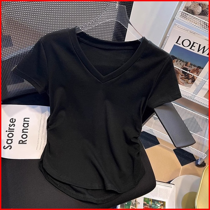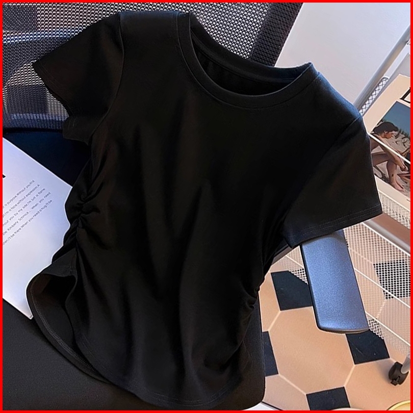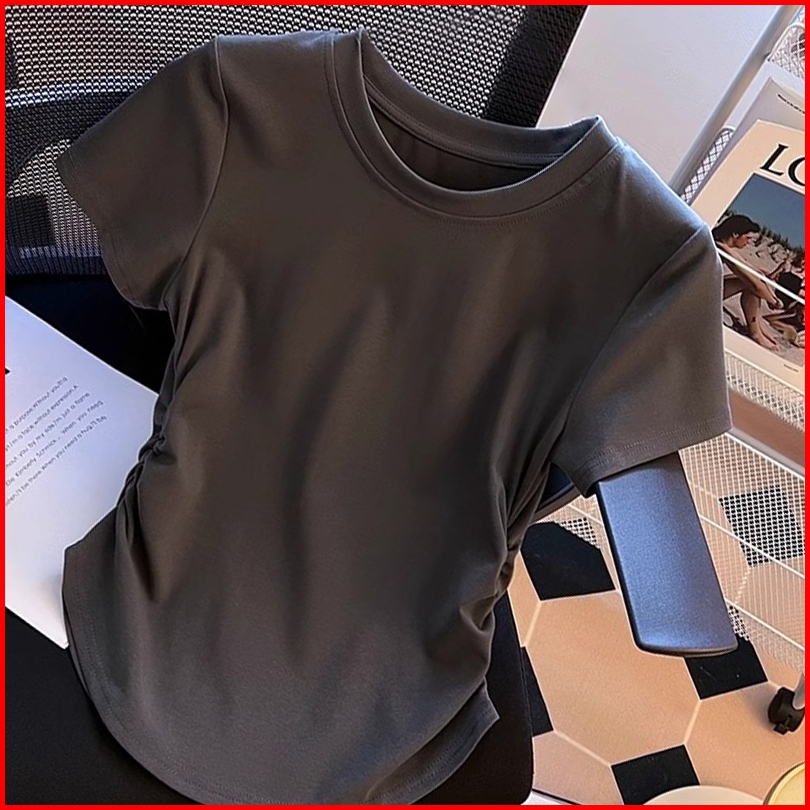 T-shirt Wanita Musim Panas Yang Memamerkan Pusar Manis T-shirt Lengan Pendek Warna Polos Atasan Kasual Fashion Korea Cro