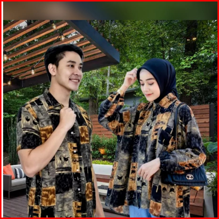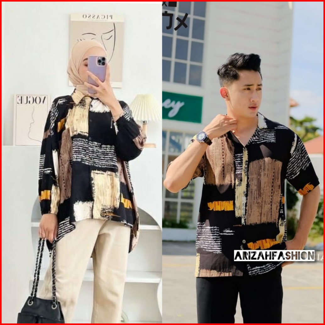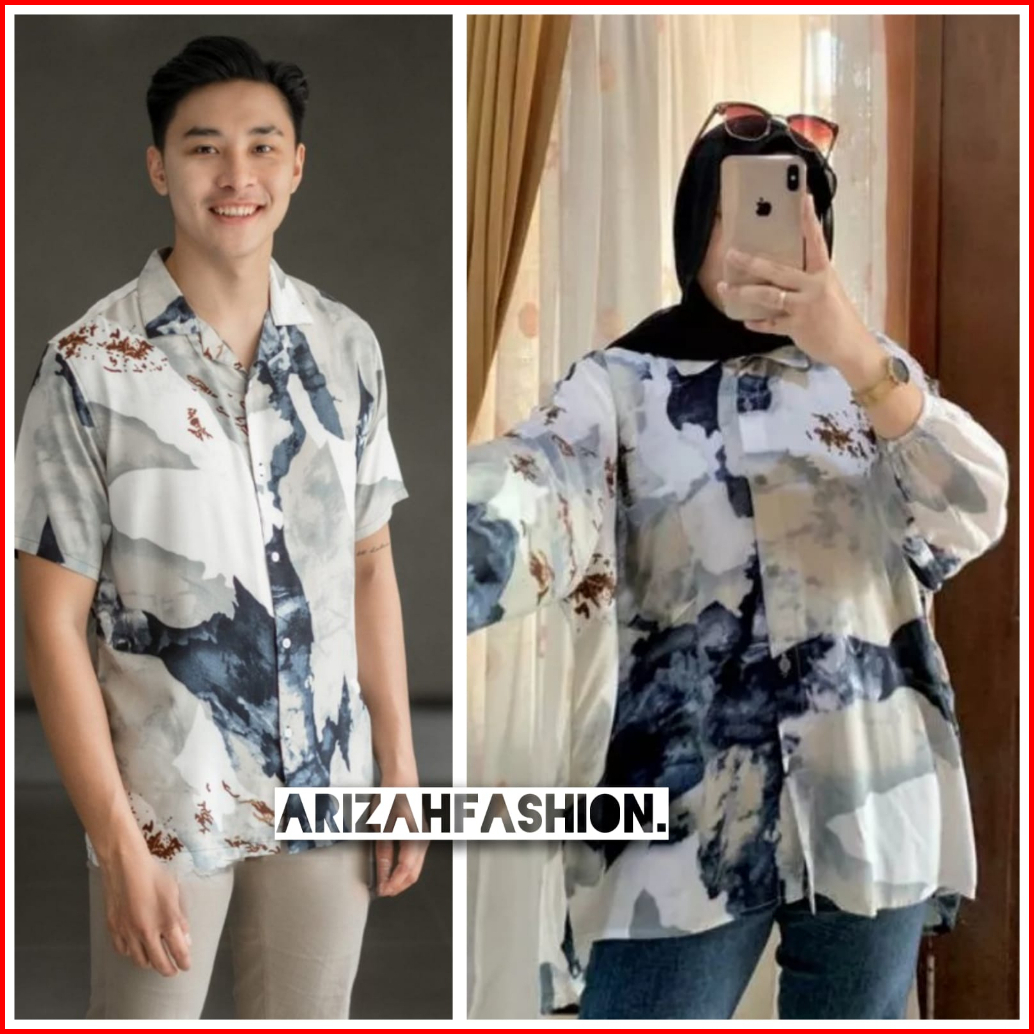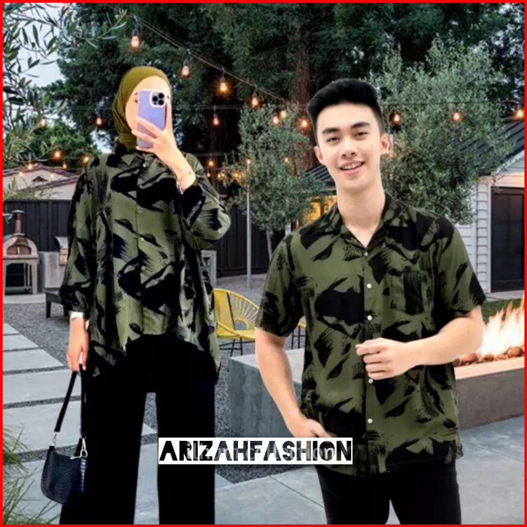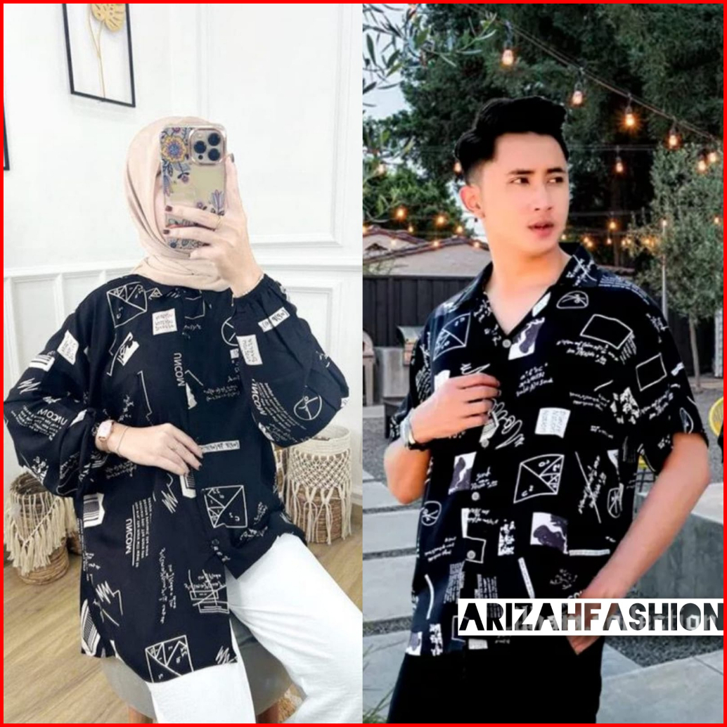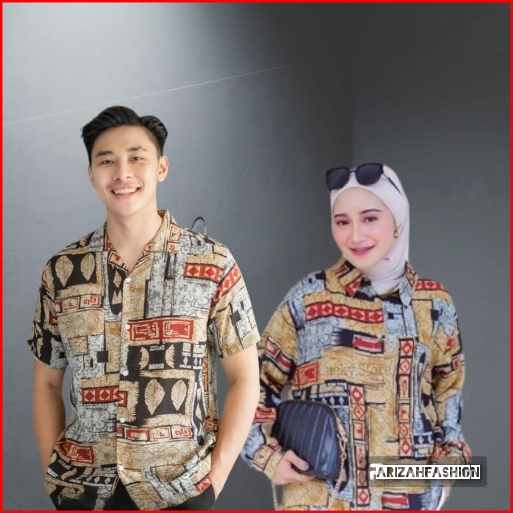 Setelan Kemeja Unisex Rayon Motif Terbaru Kemeja Couple Cewek Cowok Model Kekinian Atasan Couple Hawai Motif Vintage
