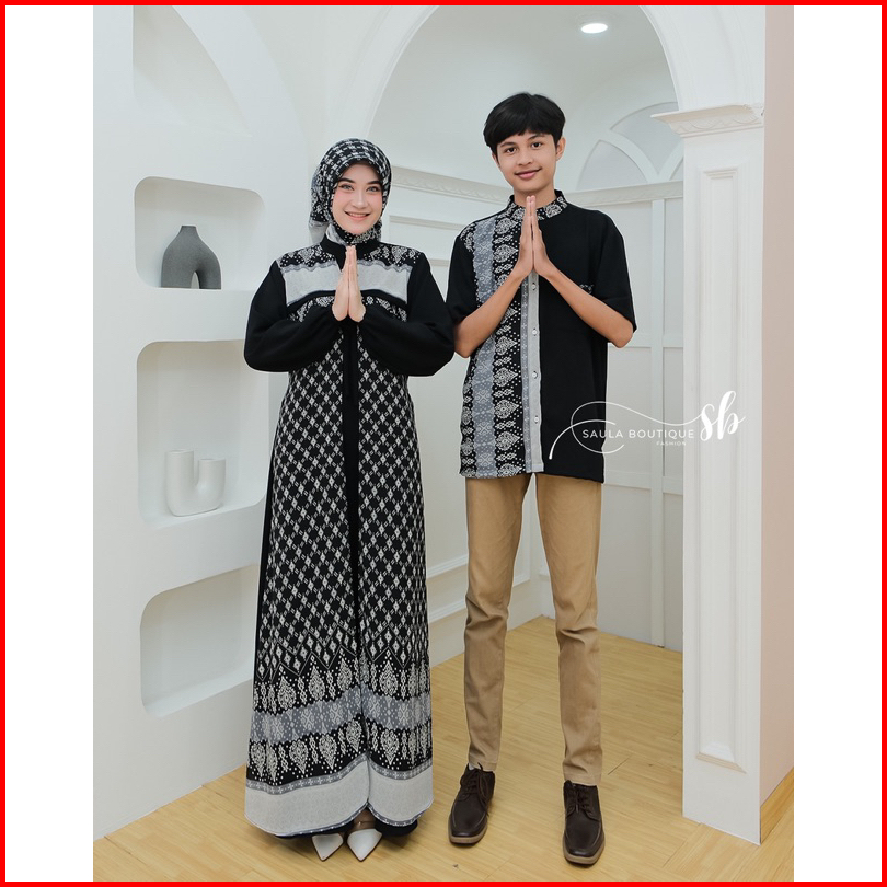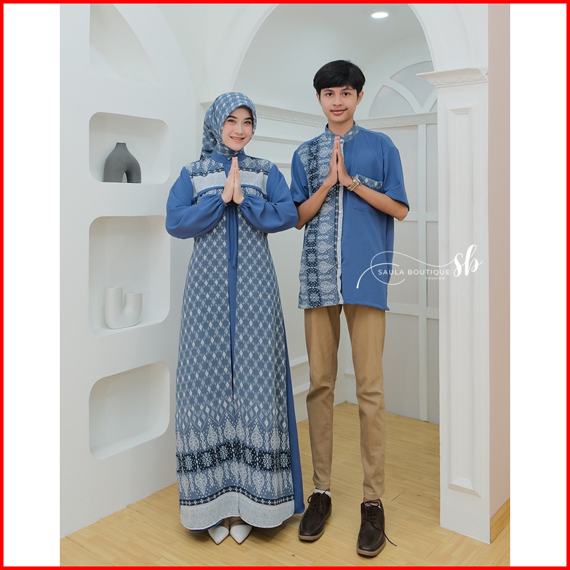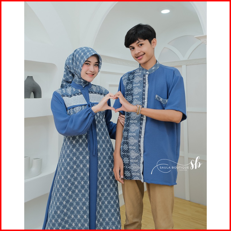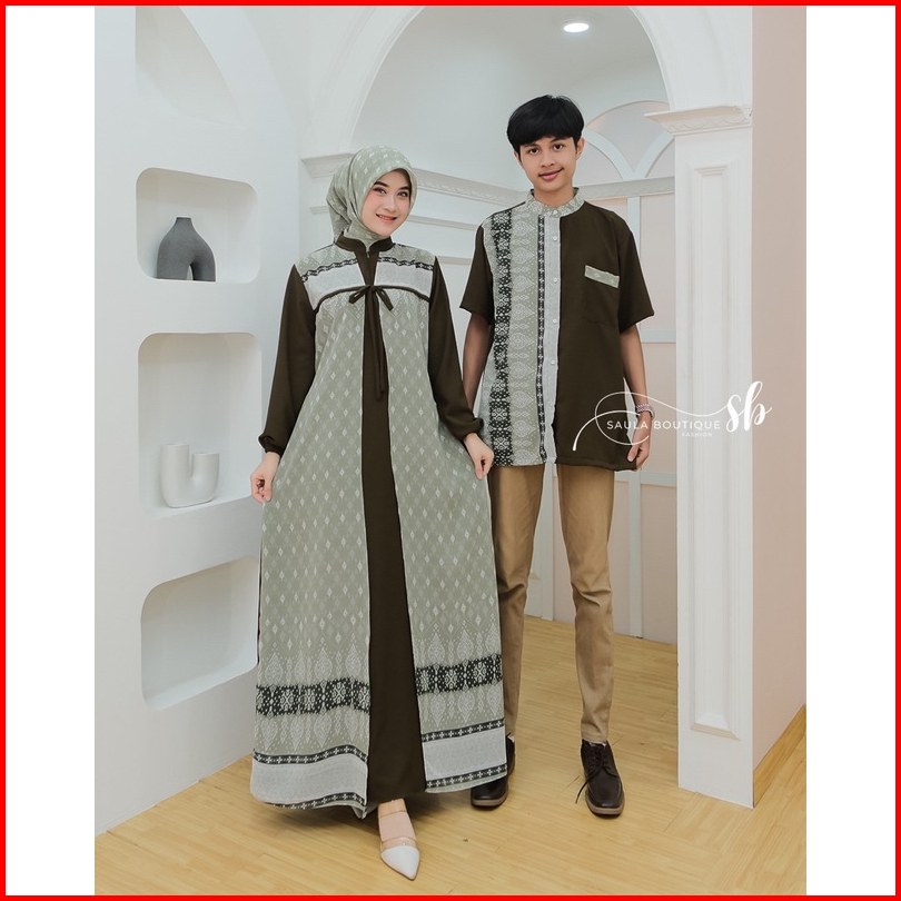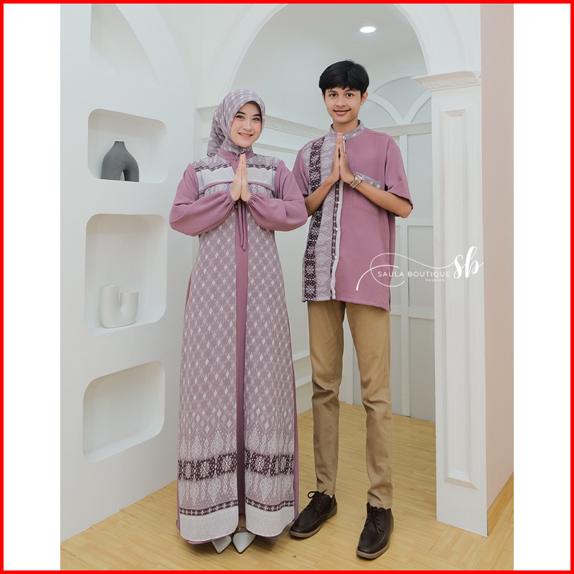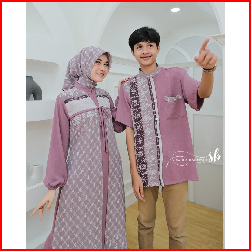 Raina Sarimbit Gamis Dan Kemeja Keno Crinkle Bahan Soft Mix Ceruty Motif Premium Dress Couple Cringkel Dan Ceruty Aprint