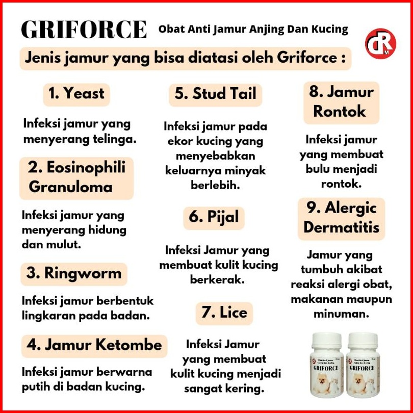 Obat Jamur Anjing Kucing Kitten Griforce Anti Jamur Ringworm Parasit Kulit Berkerak Alergi Dermatitis Bulu Rontok Ketomb