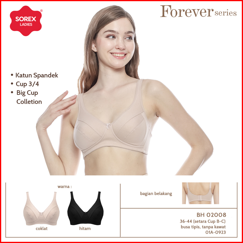 Sorex Bra Basic Big Cup Setara Cup C Tanpa Kawat Busa Tipis Kait 3 Harian Nyaman Stretch Bh 02008