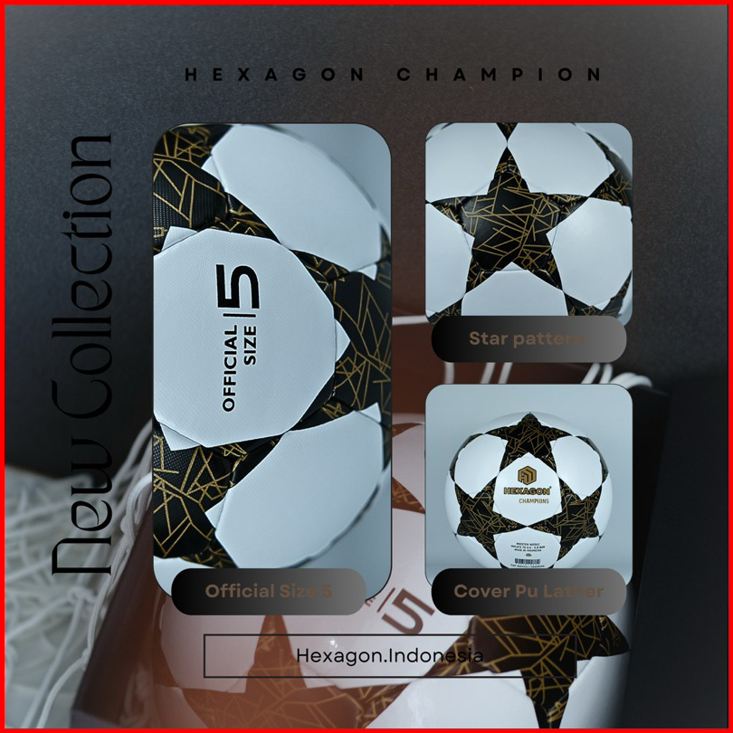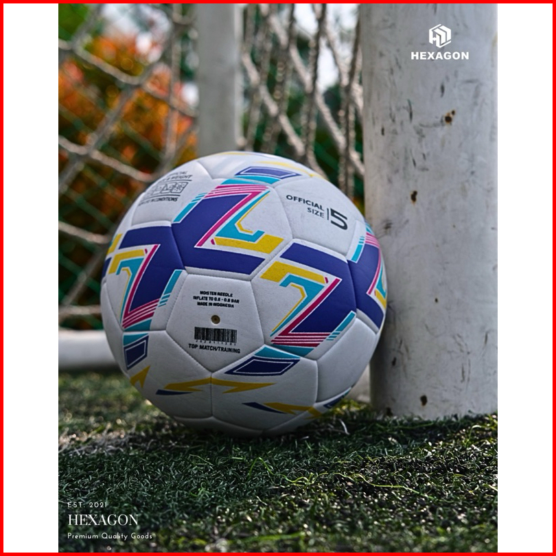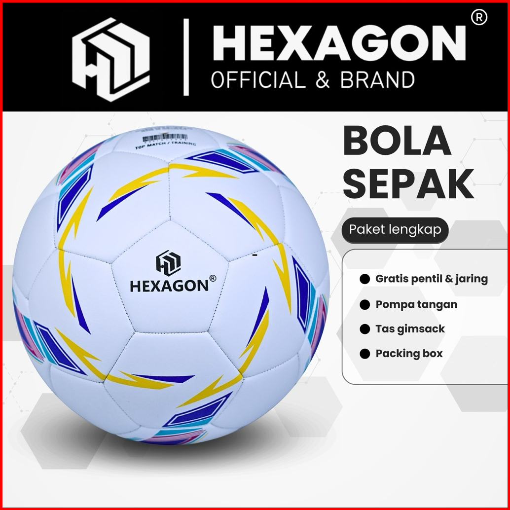 Bola Sepak Bola Kaki Size 5 Original Hexagon Paket Lengkap Gratis Pentil Jaring Pompa Tas Gymsack