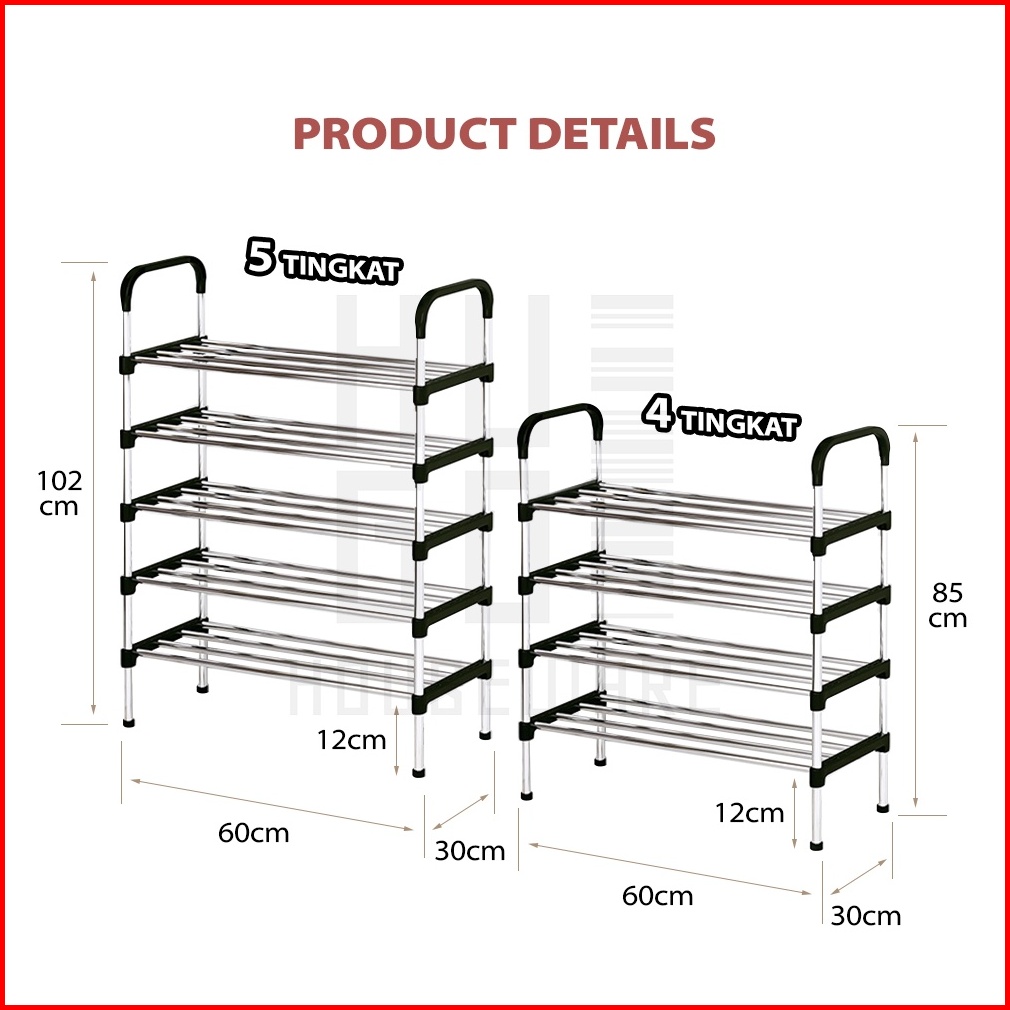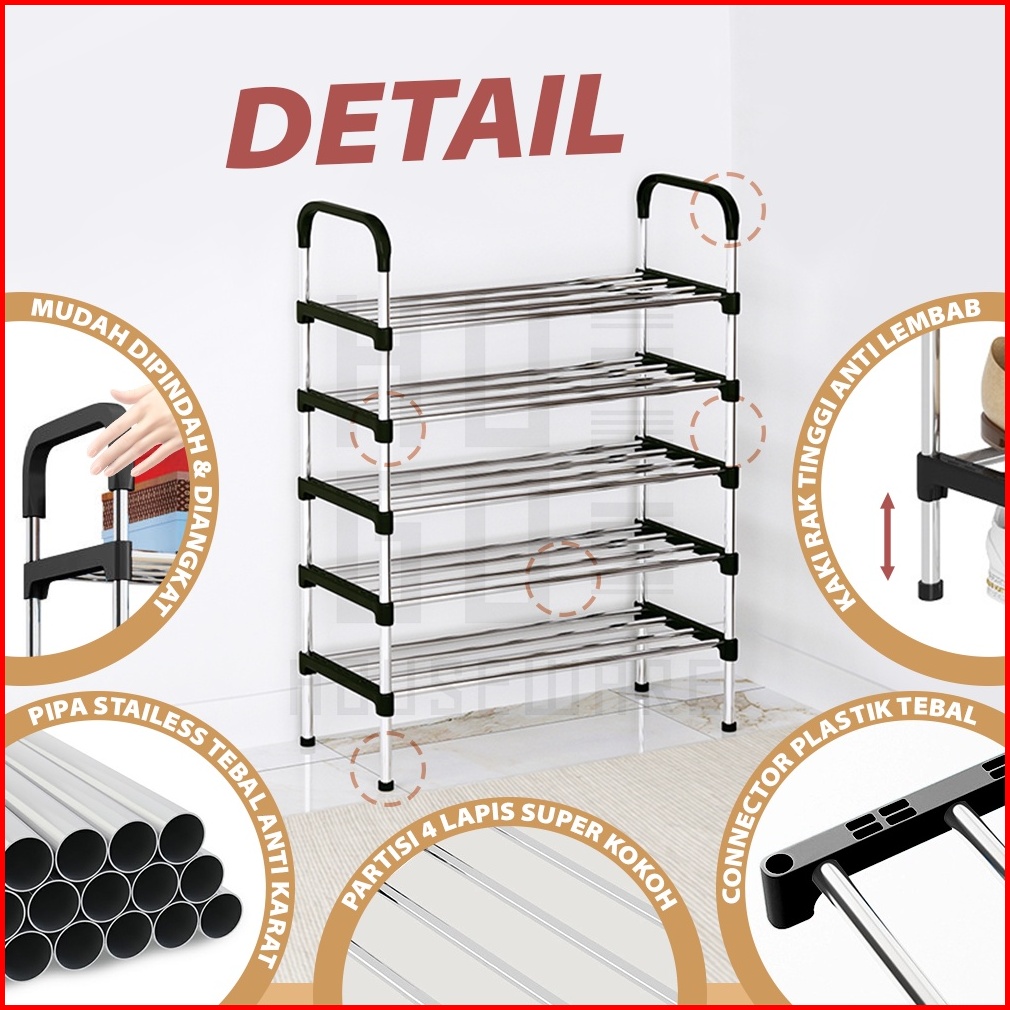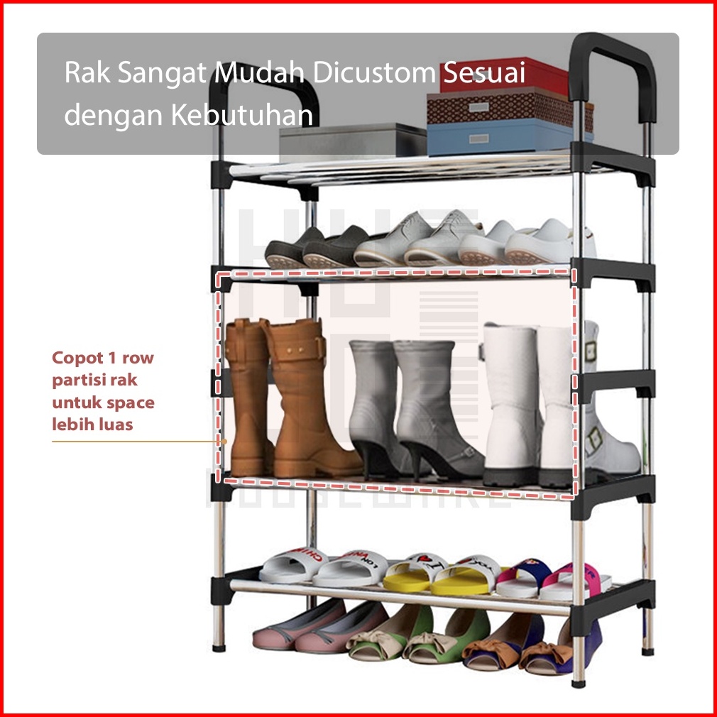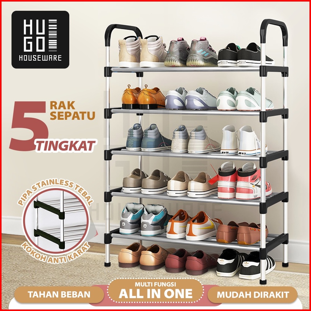 Hugo Rak Sepatu Portable Serbaguna 4 5 Tingkat Stainless Steel