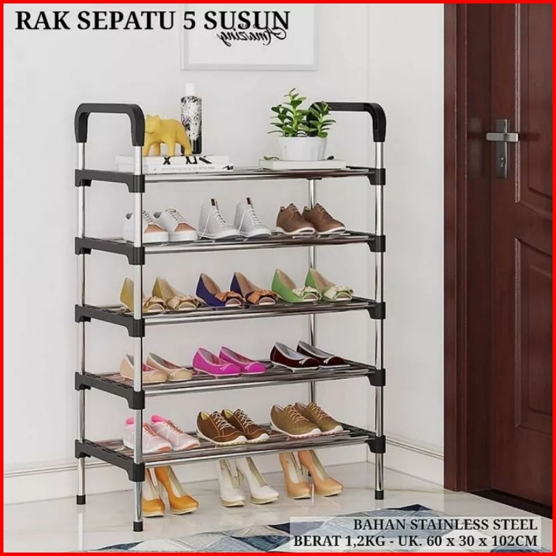 Rak Sepatu 5 Susun Stainless Anti Karat Portable Bisa Holder Payung