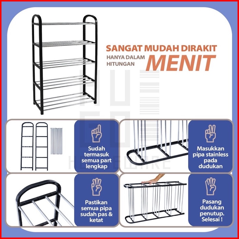 Rak Sepatu Dan Sandal 4 Susun Besi Stainless Dan Platik