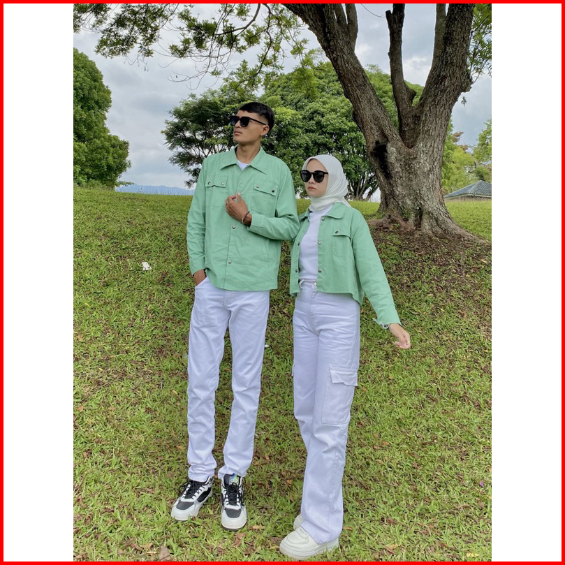 Himie Couple Set - Kemeja Kanvas Couple Sudah 2 Pcs - Baju Couple Pria Wanita Korean Style