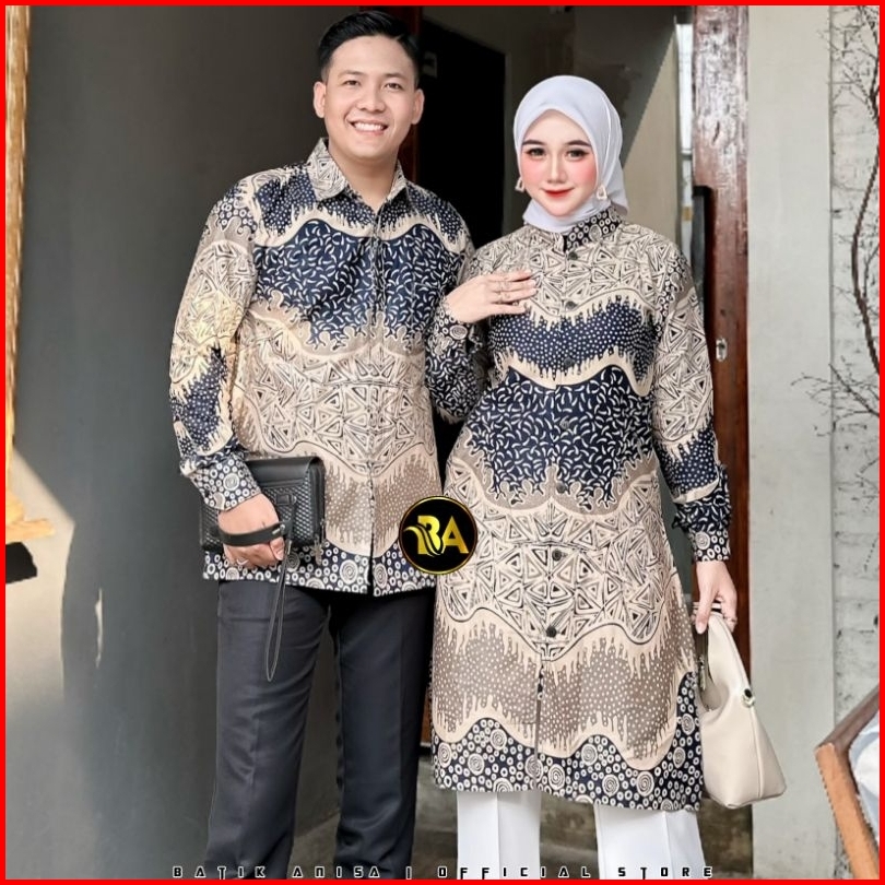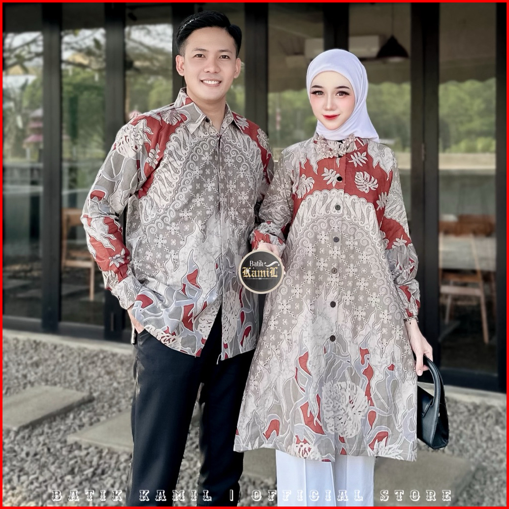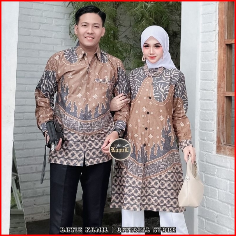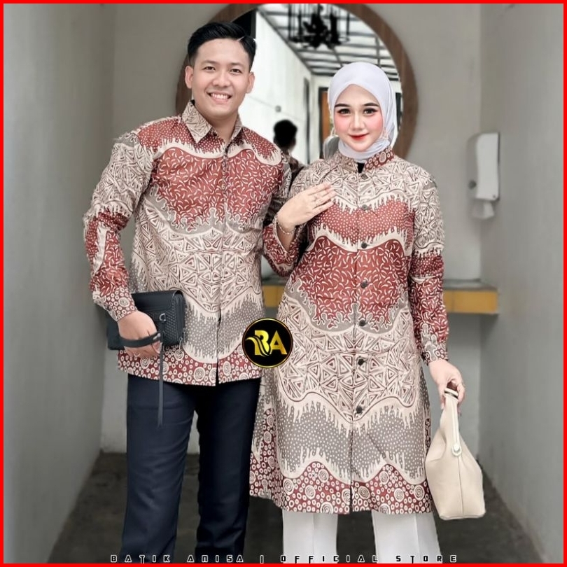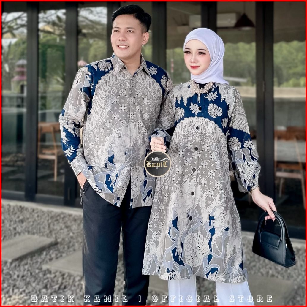 Batik Tunik Couple Modern Set Pakaian Couple Kemeja Batik Pria Panjang Atasan Batik Couple Terbaru