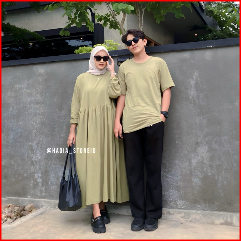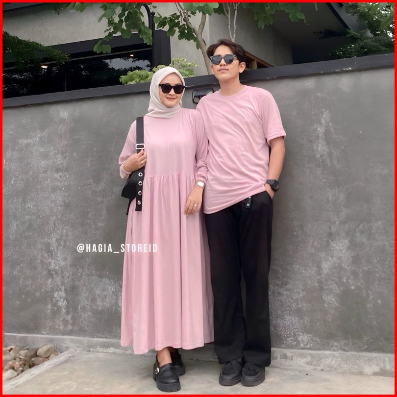 Racuela Couple By Hagia Sudah Sepasang Dress Dan Kaos Polos Pria