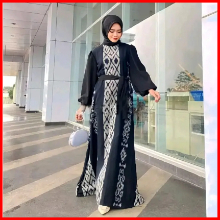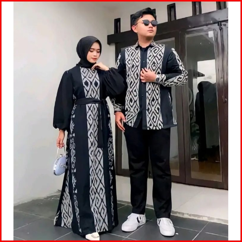 Nada Ethnic - Baju Tenun Couple Rania Hitam - Dress Kondangan Pasangan Baju Lebaran Gamis Abaya