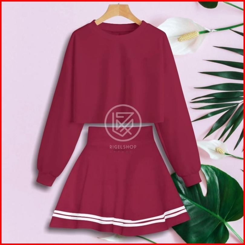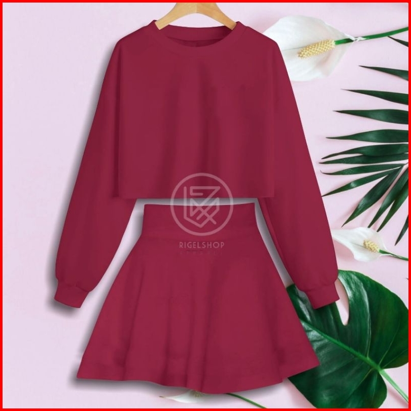 One Set Crop Top Lengan Panjang Olahraga Wanita Kasual