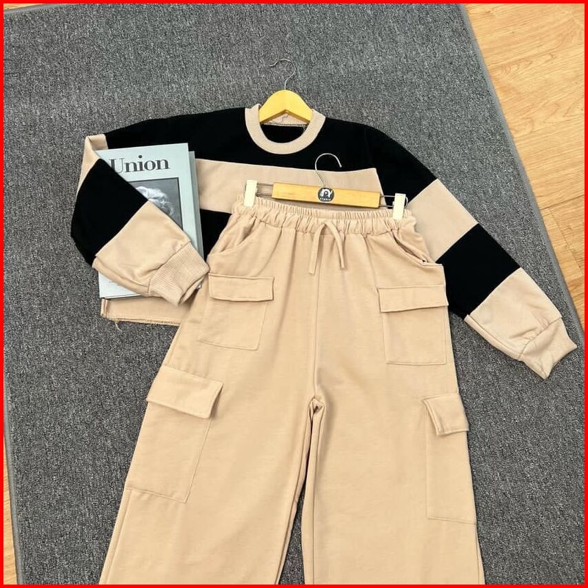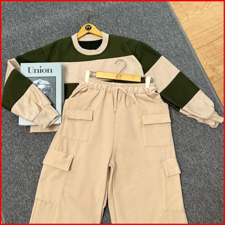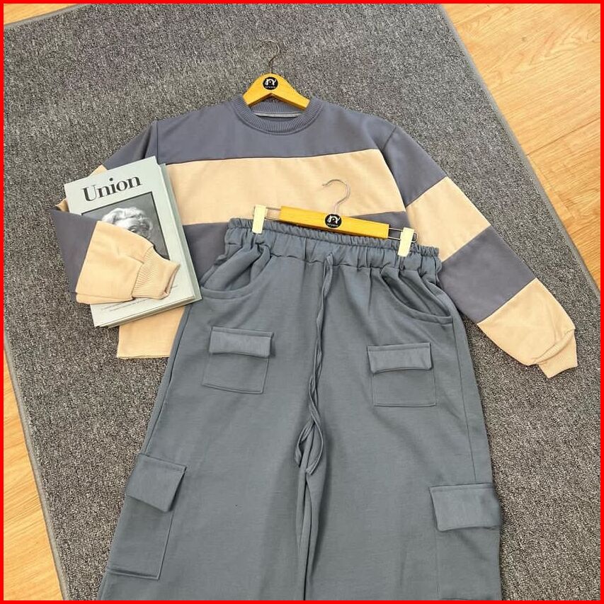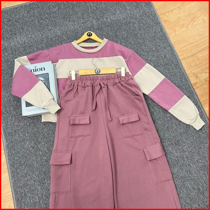 Bundling Pocky Sweater Crop Mix Jooly Pants - Pakaian Wanita Terbaru Crewneck Multicolour Mix Cargo Pants Jooly