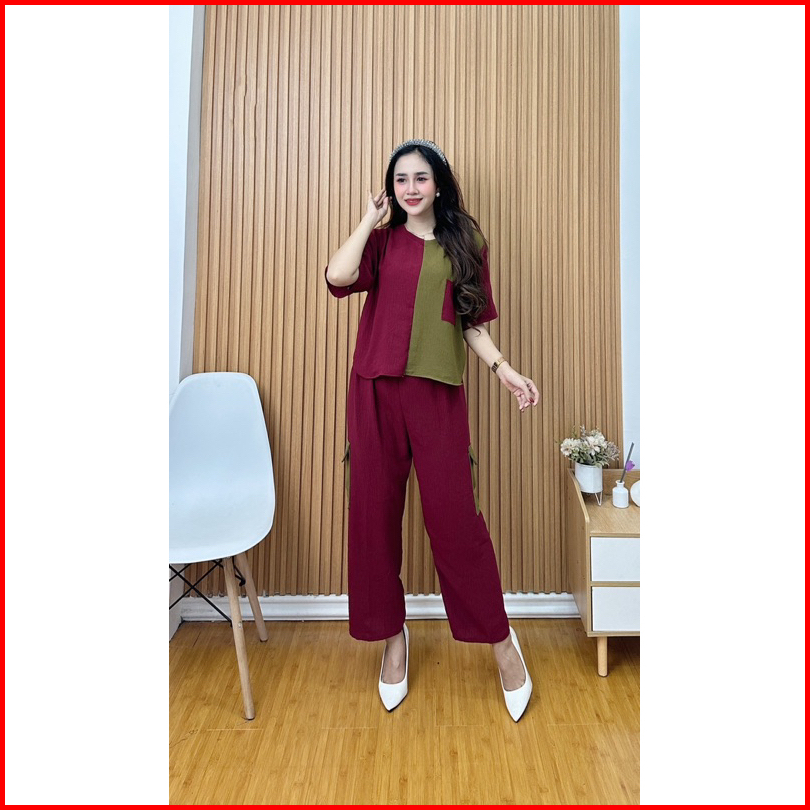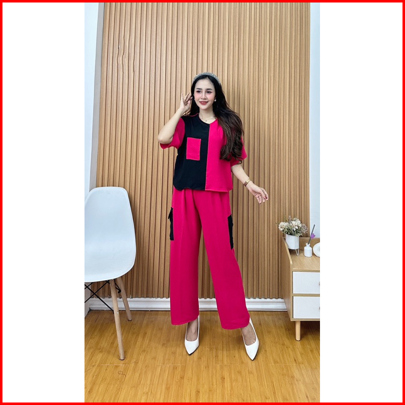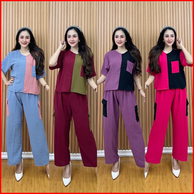 Oneset Cargo Pendek Kombinasi Dua Warna Set Cargo Kombinasi Two Colours