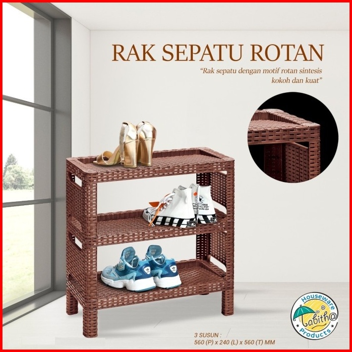 Rak Sepatu Plastik Rotan Tabitha Motif Estetik