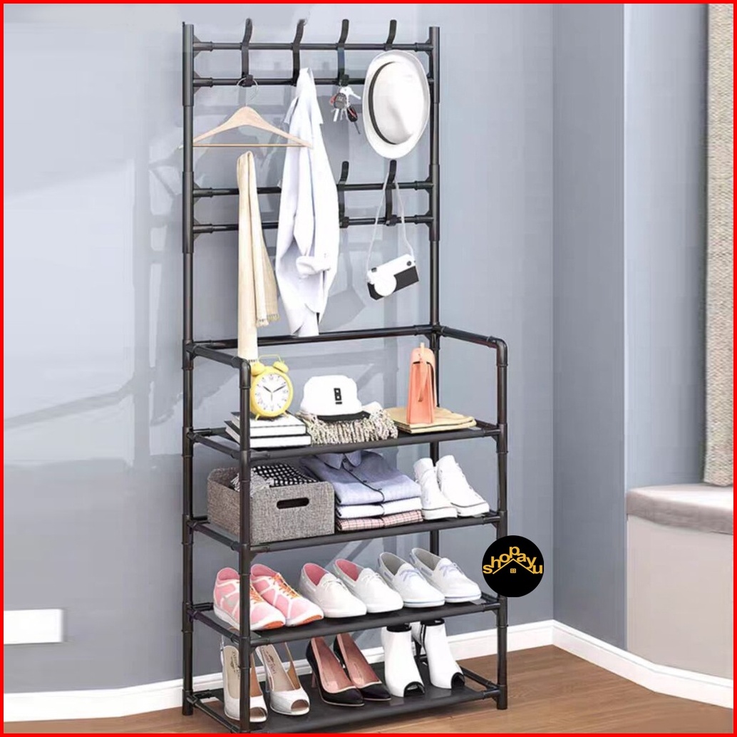 Rak Gantungan Baju Hanger Tas Stand Hanger Rak Sepatu Penyimpanan Tempat Topi Rak Pakaian Serbaguna