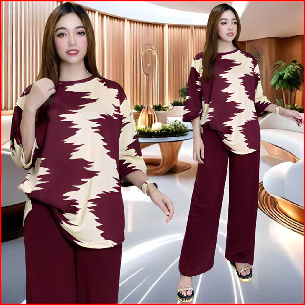 Dahayu Setelan Wanita Ld 120 Celana Lurus Dan Atasan Oval Belahan Kiri Dan Kanan Oversize Wanita Celana Lurus Karet Kant