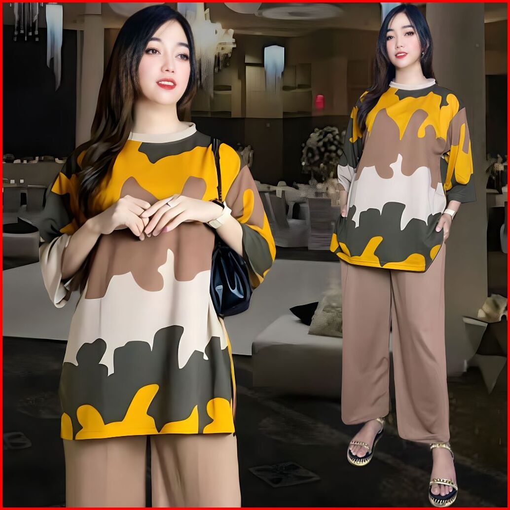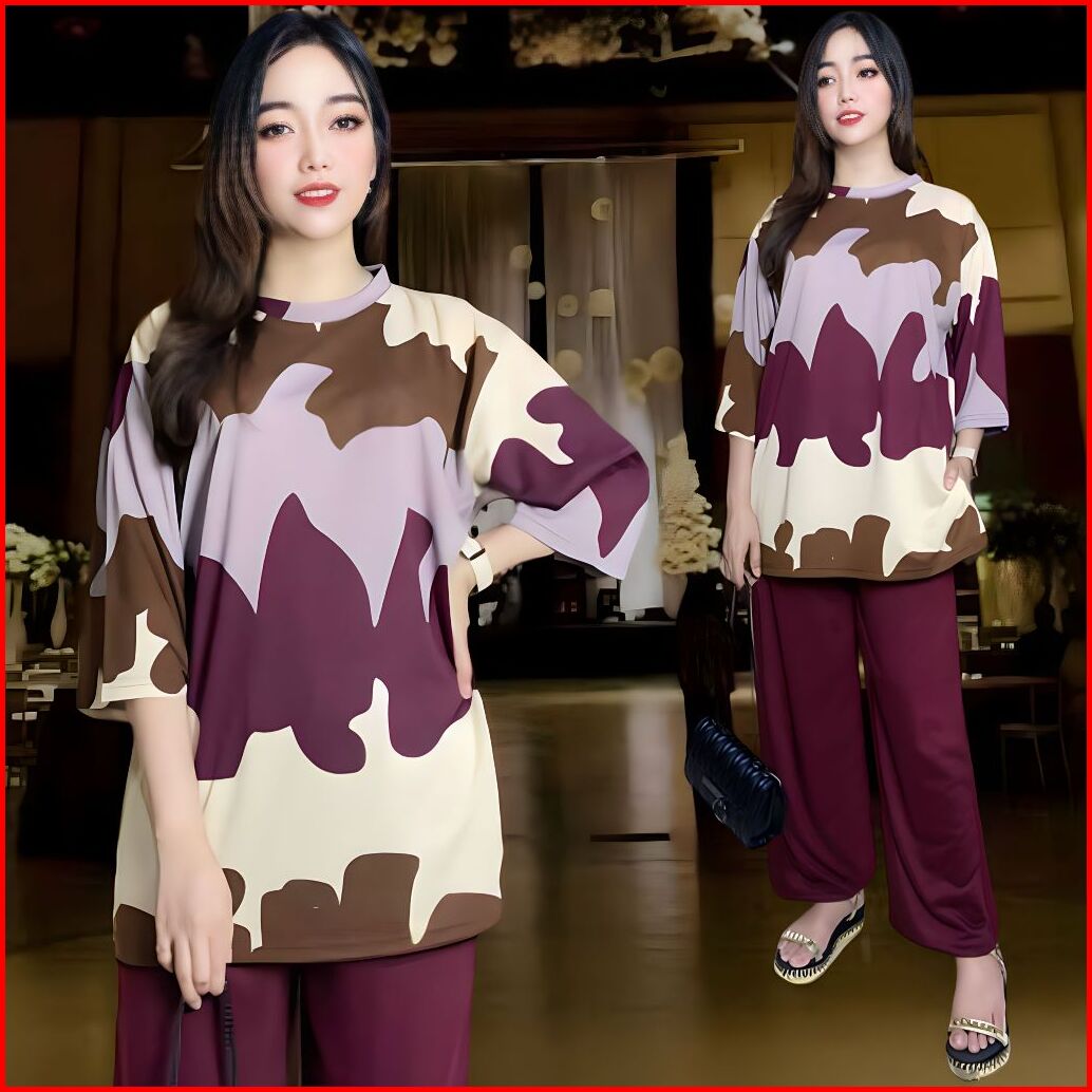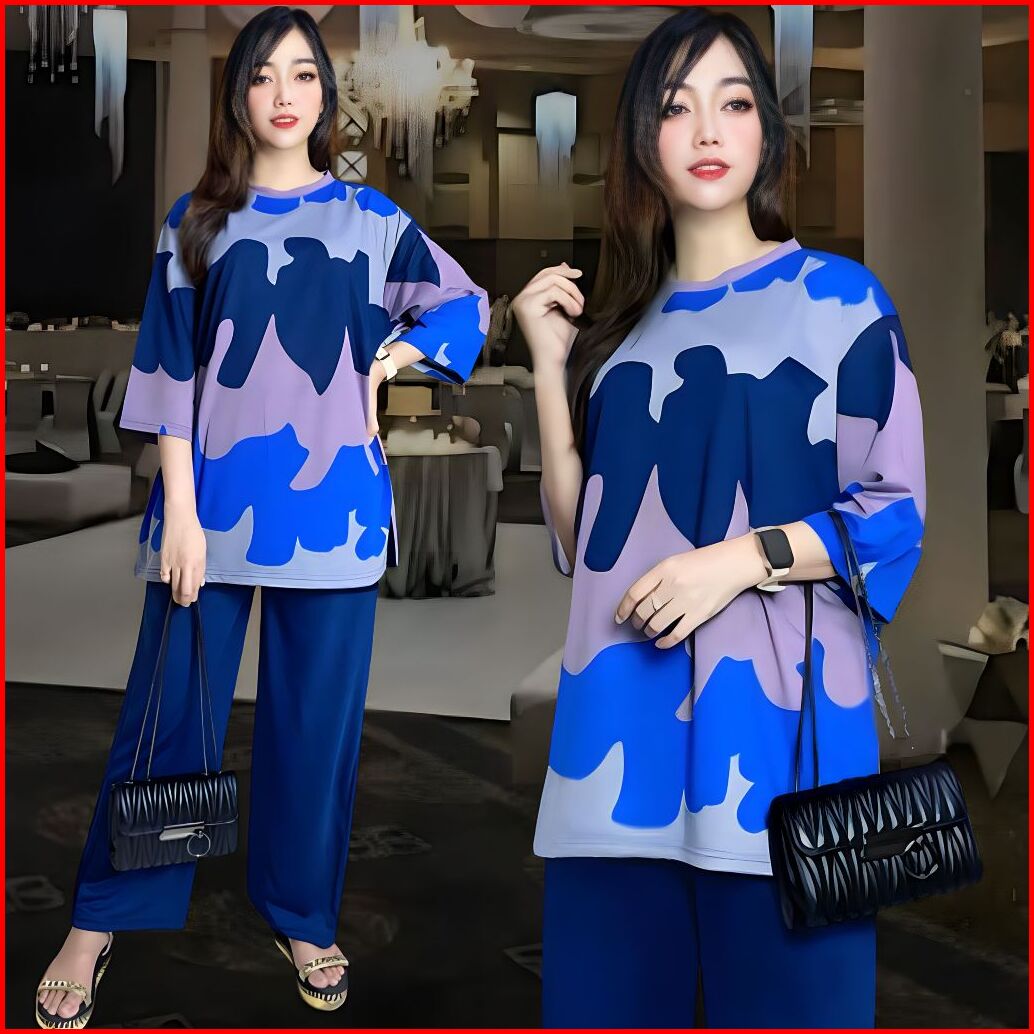 A8d1 Setelan Wanita Jumbo Ld 120 Ld 140 Atasan Wanita Dan Celana Kulot Wanita Baju Oversize Dewasa Motif Celana Panjang