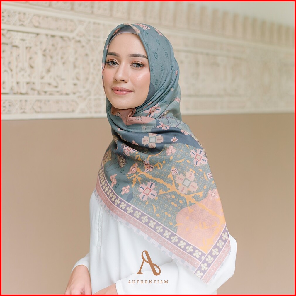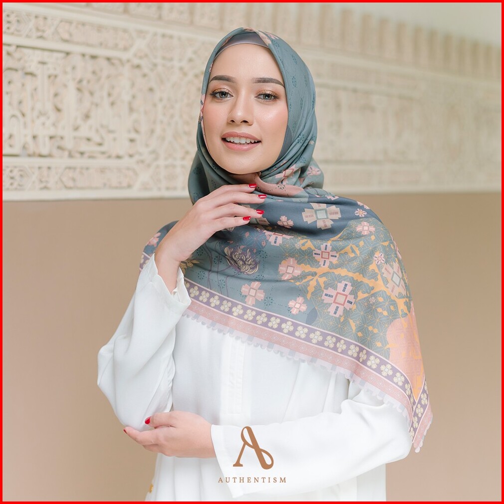 Shanna Series Pale Green Kerudung Segi Empat Motif Voal Ultrafine Premium Lasercut Authentism