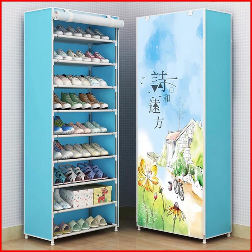 A1-123 Rak Sepatu Ak-10 Lemari Rak Sepatu 9 Susun Rakitan Shoes Rack With Dust Cover