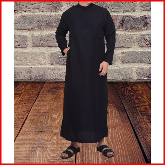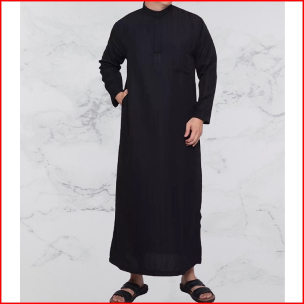 Jubah Pria Gamis Pria Dewasa Remaja Lengan Panjang Hitam Polos Bordir Fashion Muslim Kekinian