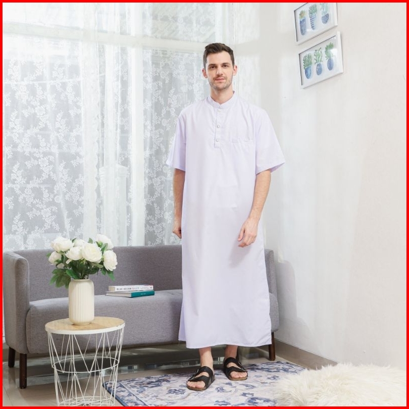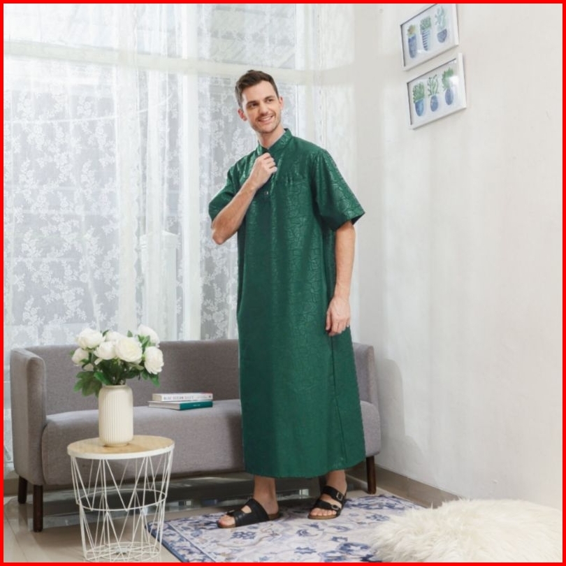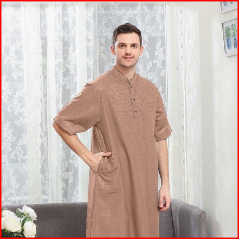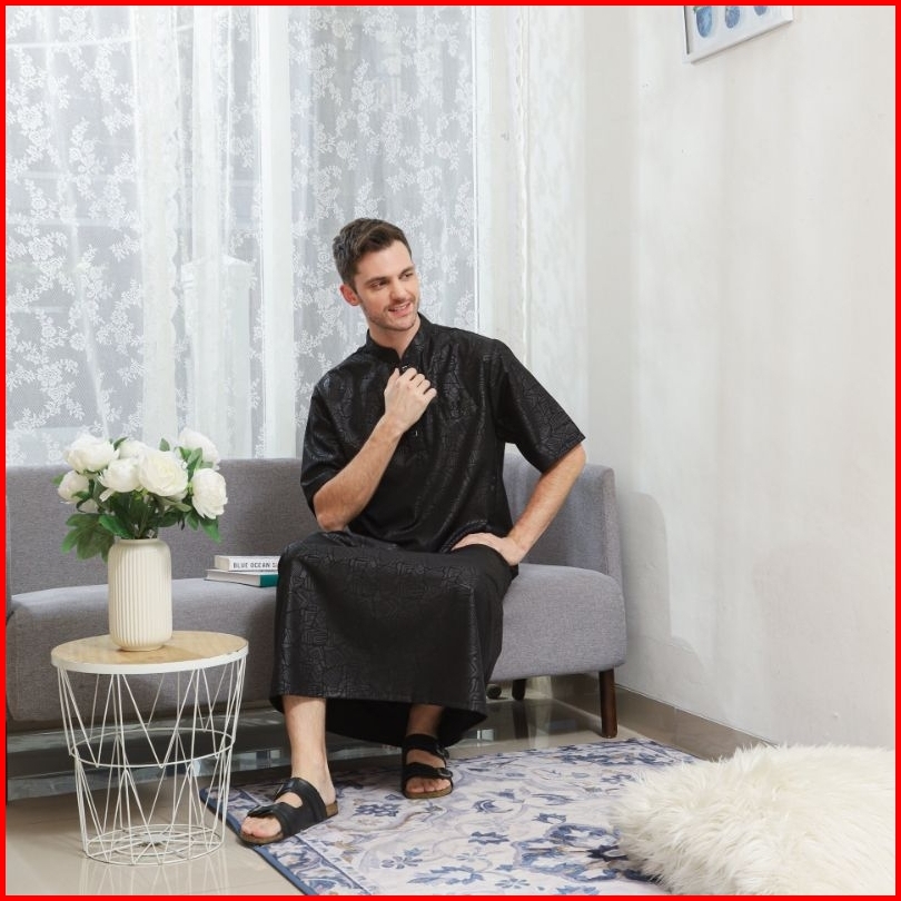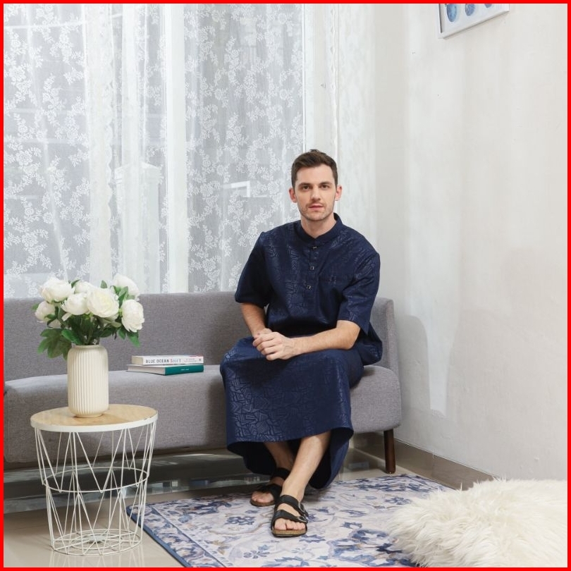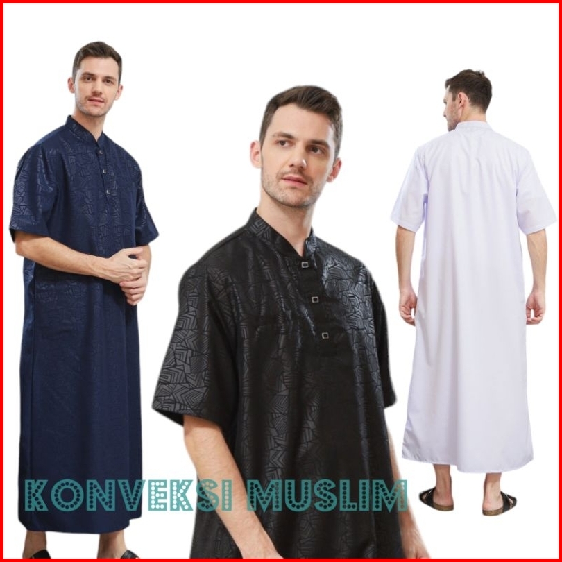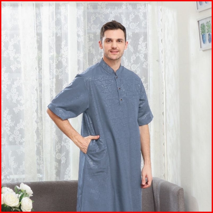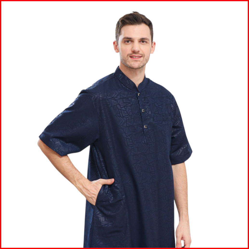 Delifaz - Jubah Gamis Pria Dewasa Lengan Pendek Bahan Emboss Al-kof - Navy