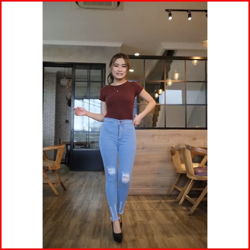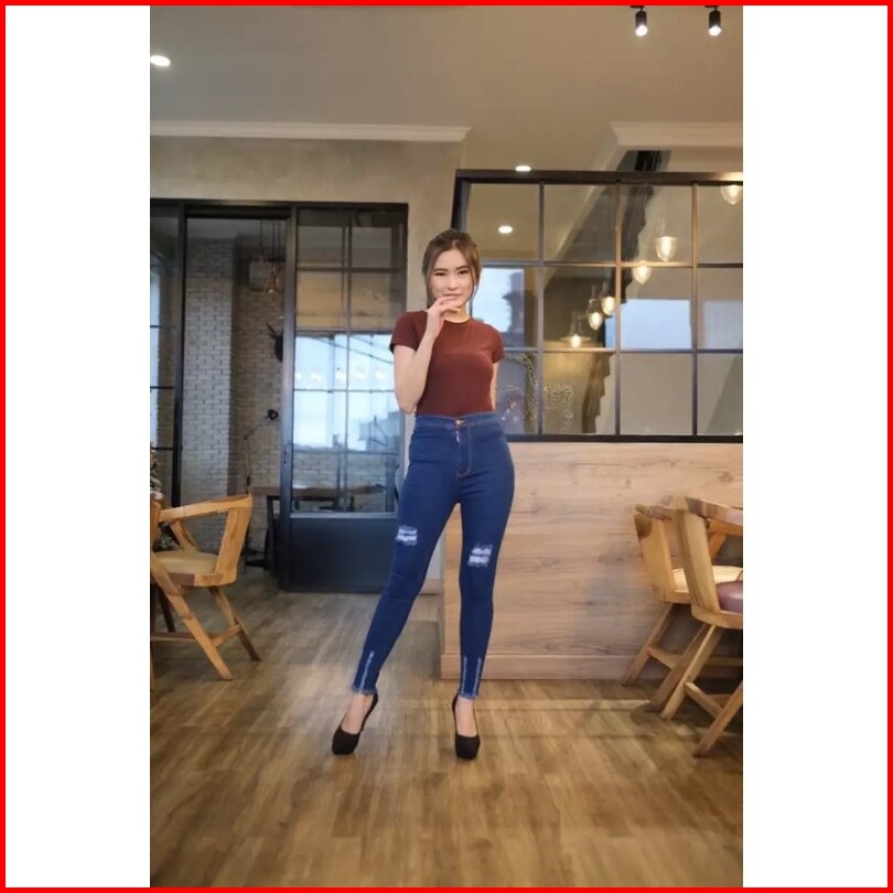 Hw Ripped - Hw Sobek - Celana Jeans Highwaist