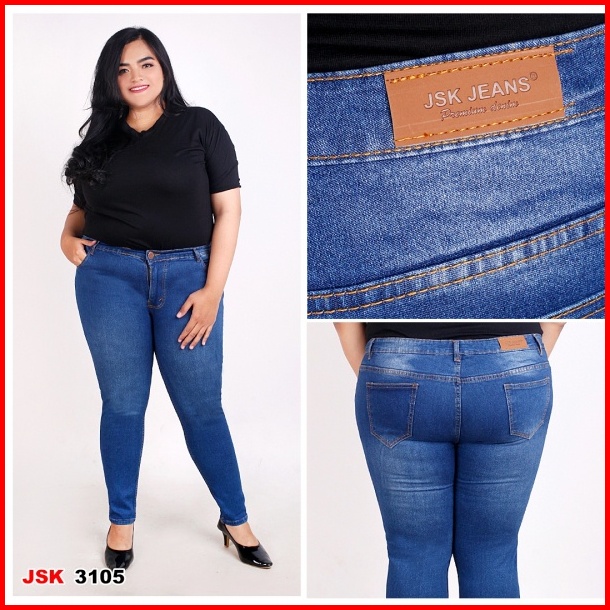 Size 35-42 Celana Skinny Jumbo Jeans Wanita Denim Strecth Melar Bigsize Model Pensil Polos Jsk