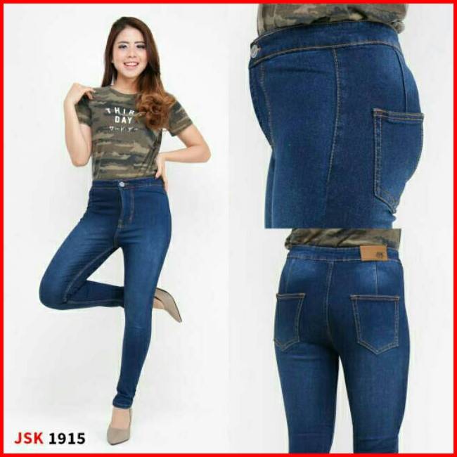 Jsk Celana Panjang Highwaist Skinny Jeans Denim Cewek Wanita 8 Warna Size 27-38