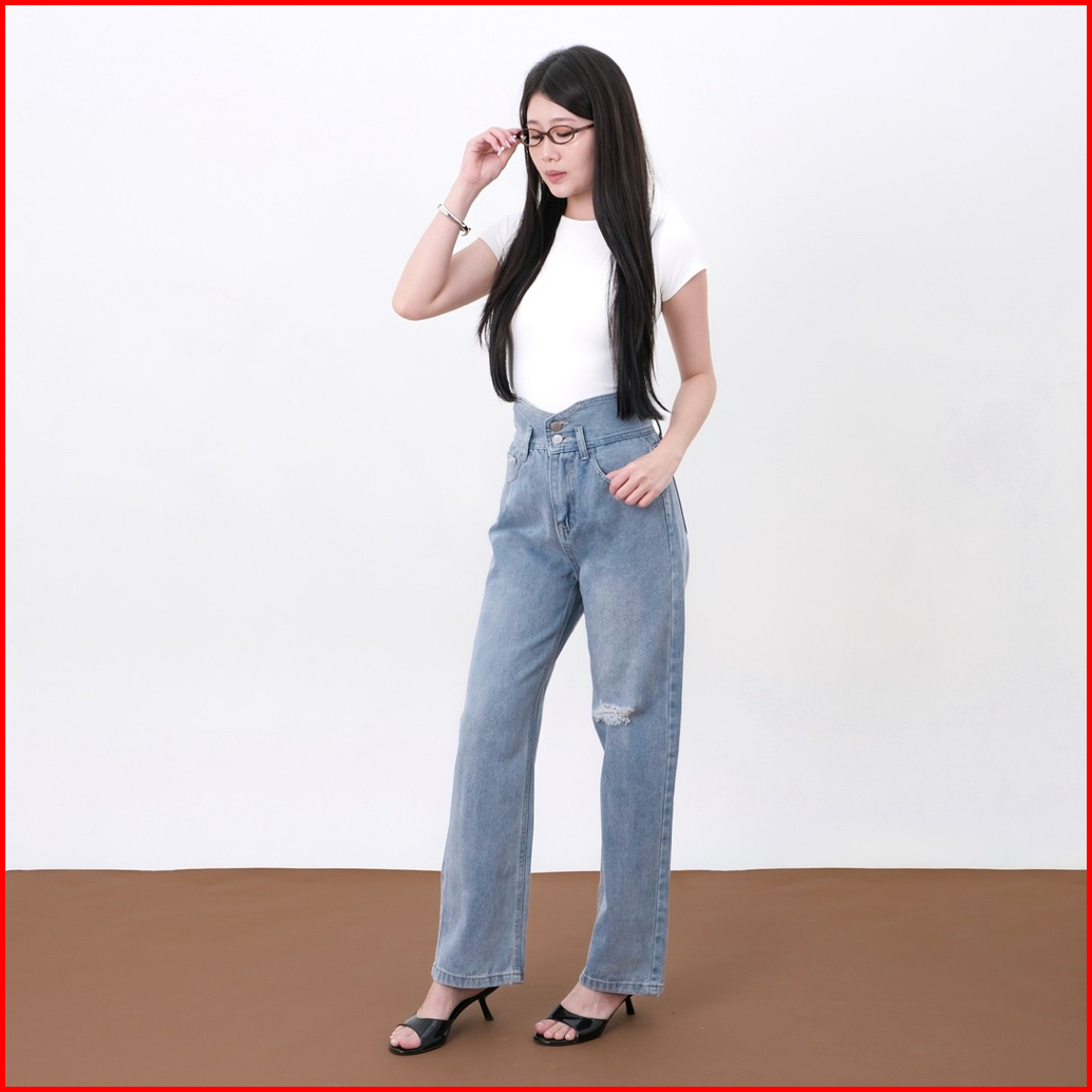 Luxe.dlabel - 208 Jeans Celana Panjang Highwaist Wanita Jeans Premium Quality Jeans Wanita Polos Ripped Jeans Highwaist