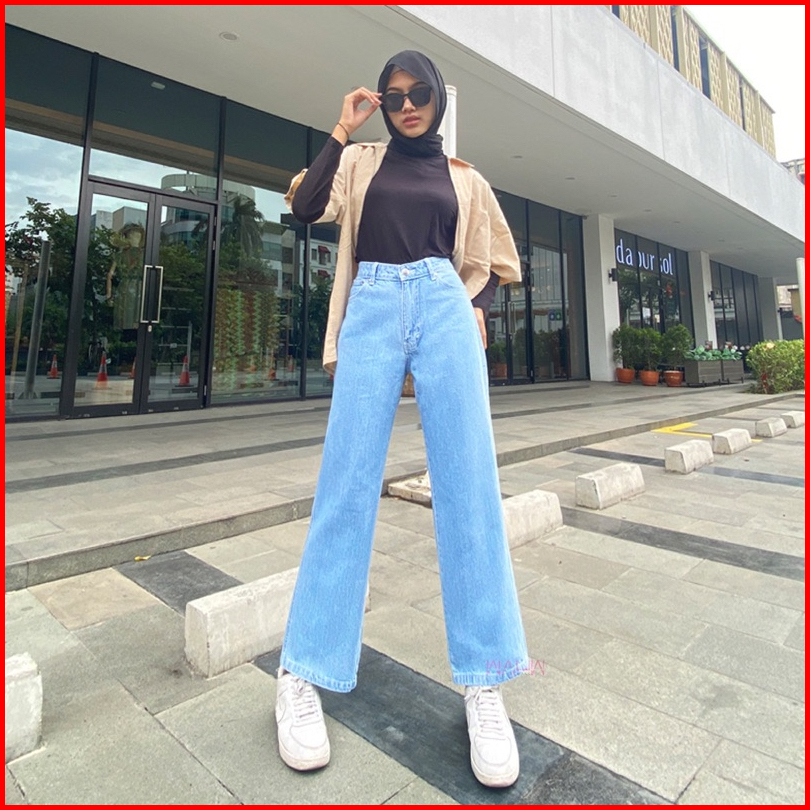 Celana Jeans Wanita Highwaist Straight Cut Import Panjang Korea Loose Premium Quality S-xxl