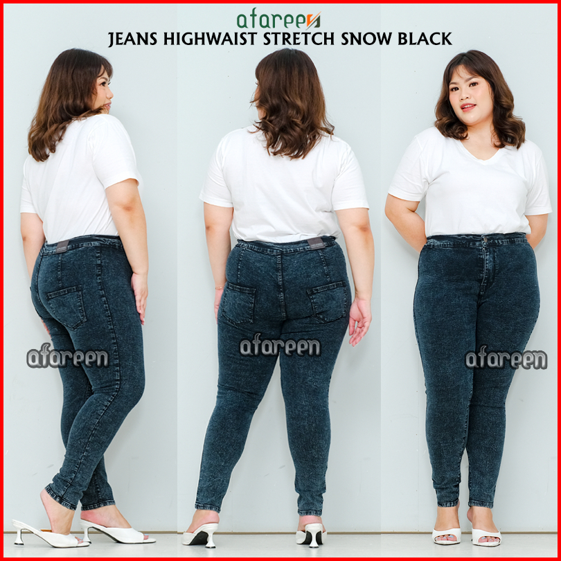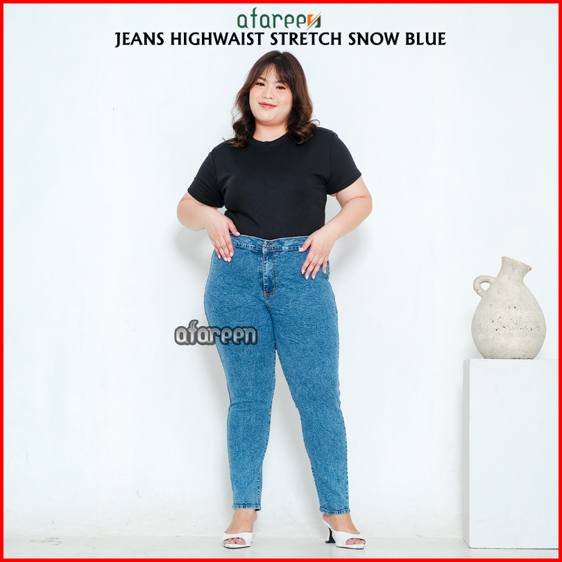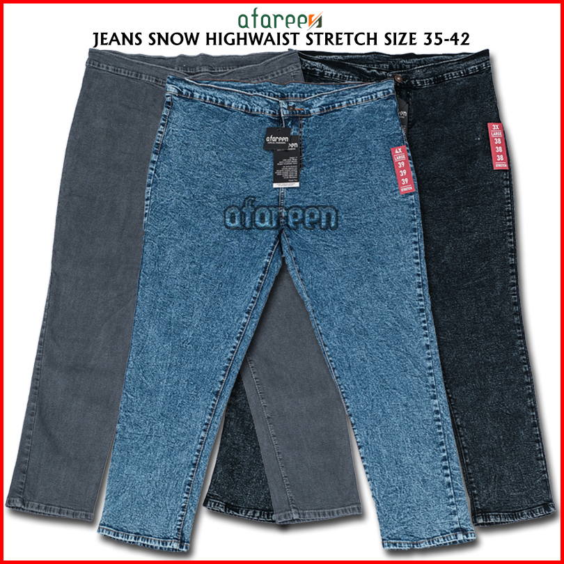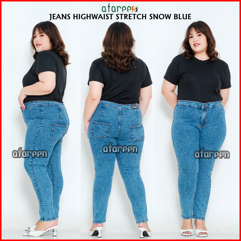 Afareen - Celana Jeans High Waist Jumbo Melar Jeans Wanita Highwaist Plus Size Jeans Gray Snow 35-43