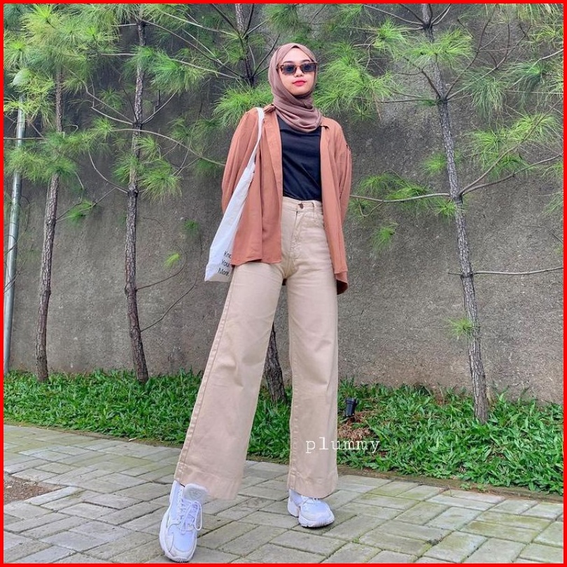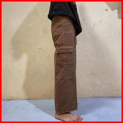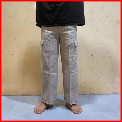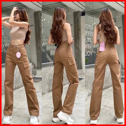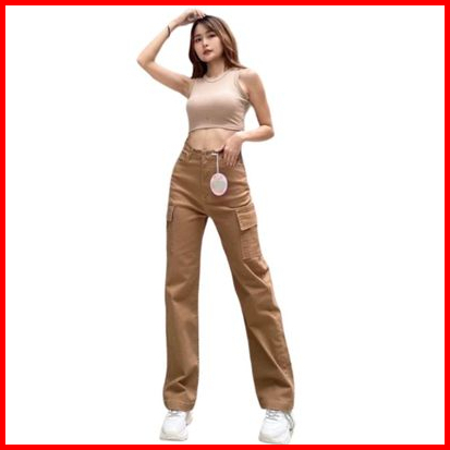 Celana Cargo Jeans Wanita Highwaist Kantong Kimpul 2 Warna Choco Cream