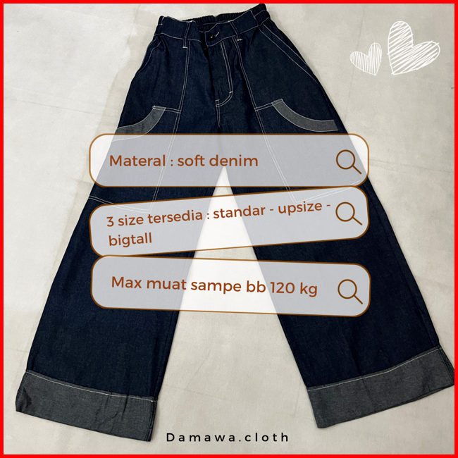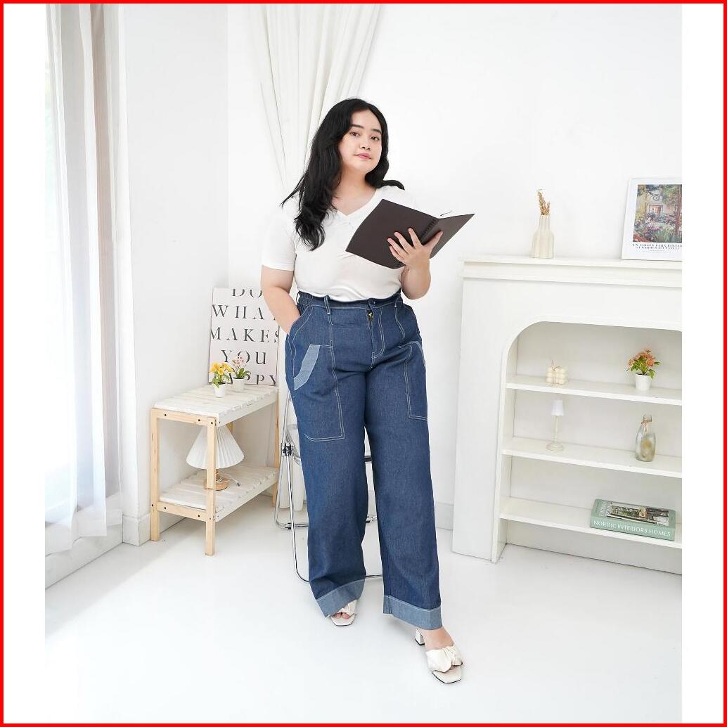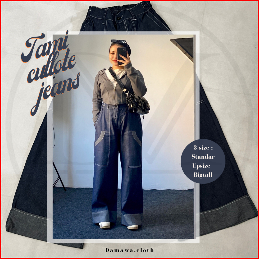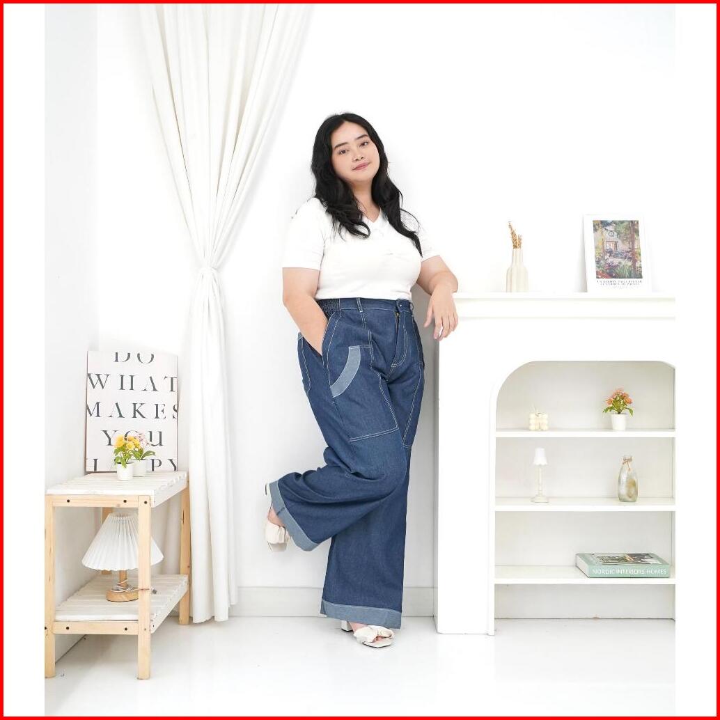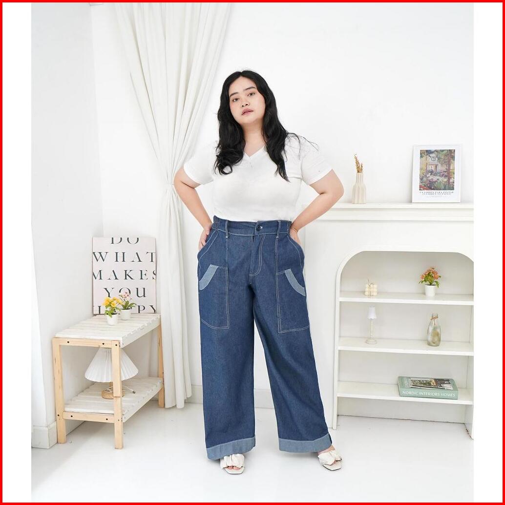Tami Celana Panjang Kulot Wanita Jeans Denim Jumbo Premium Bigsize Fit Bb 120 Kg Celana Hamil Damawa