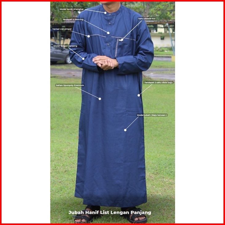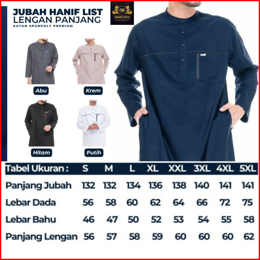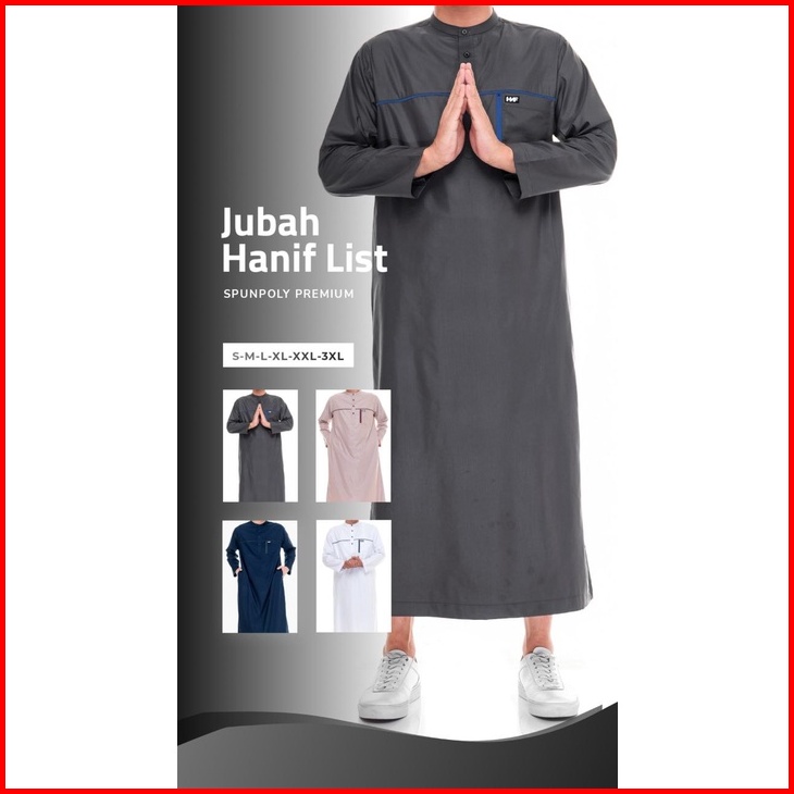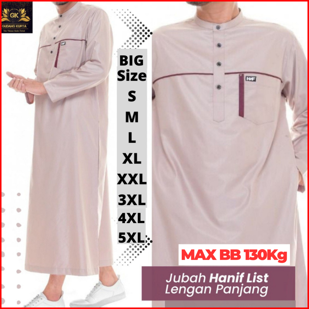 S-5xl Gamis Jubah Gamis Pria Dewasa Muslim Polos Lengan Panjang Premium Hanif List Jubah Hanif Dewasa Lengan Panjang