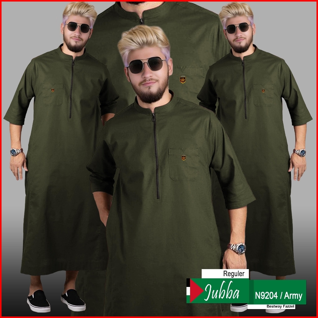 Jubba Reguler Zipper N9261 Army - Jubah Saudi Lengan - Jubah Gamis Pria Polos- Samase Haramain
