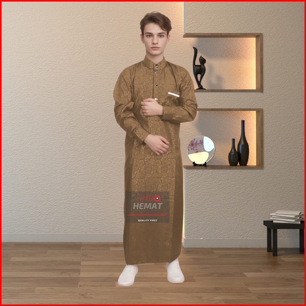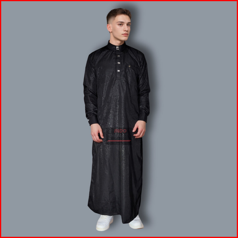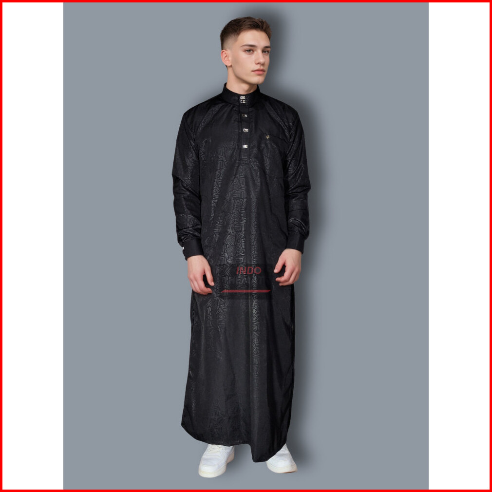 Pakaian Jubah Sultan Gamis Pria Lengan Panjang Dengan Manset Motif Embos