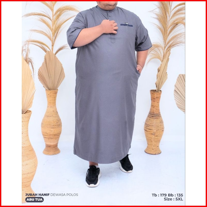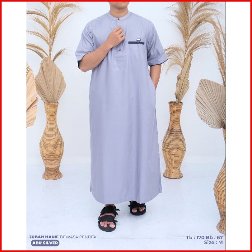 Hanif Jubah Pria Lengan Pendek Gamis Polos Bahan Spunpoly Premium Ukuran S - 5xl Bonus Peci