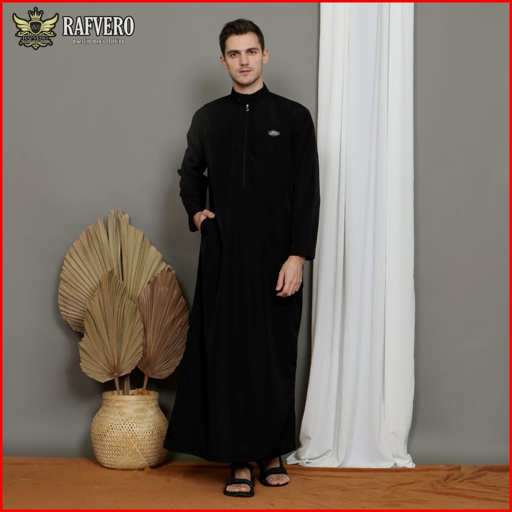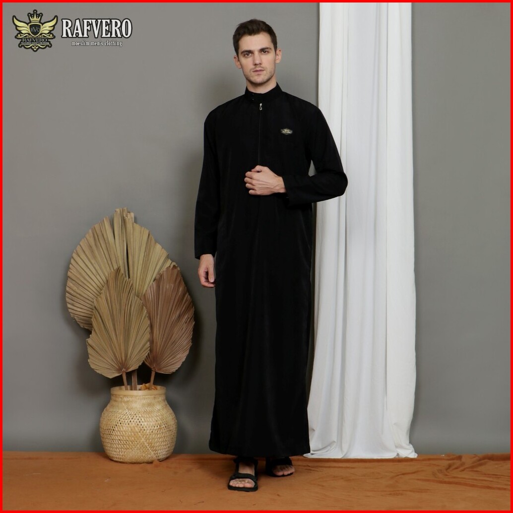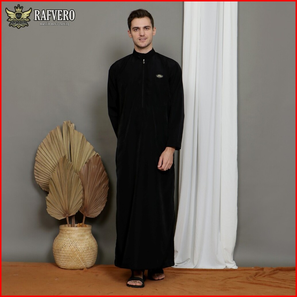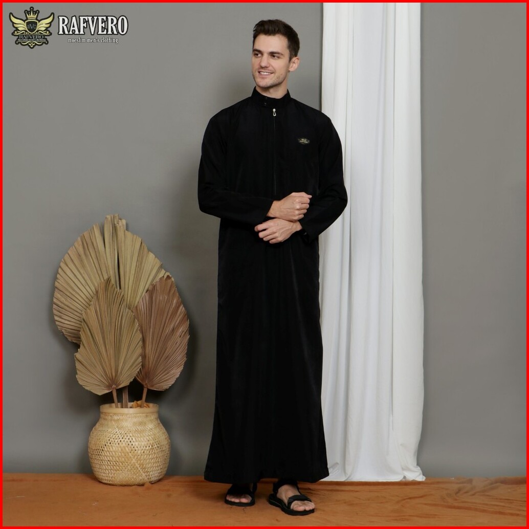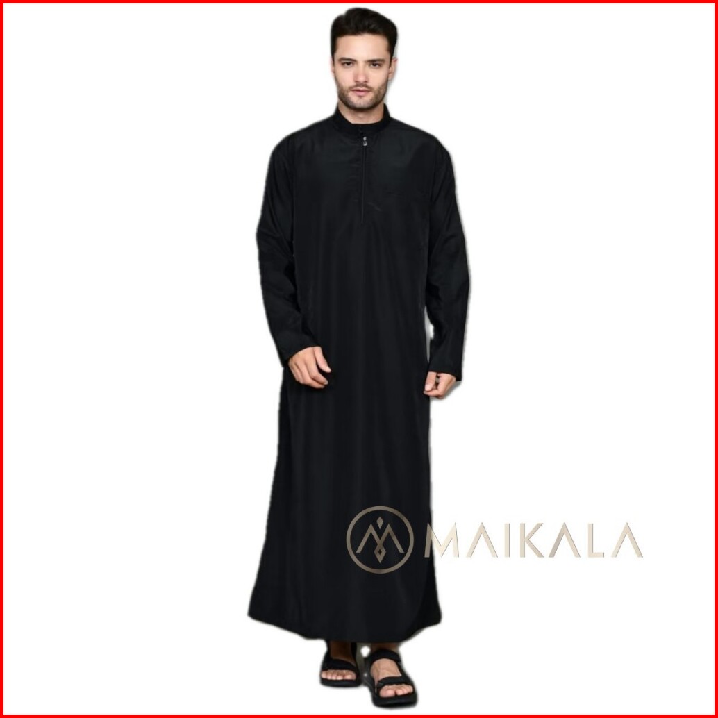 Jubah Gamis Pria Model Simple Polos Original Maikala Premium Al Haramain Warna Hitam Black Big Size